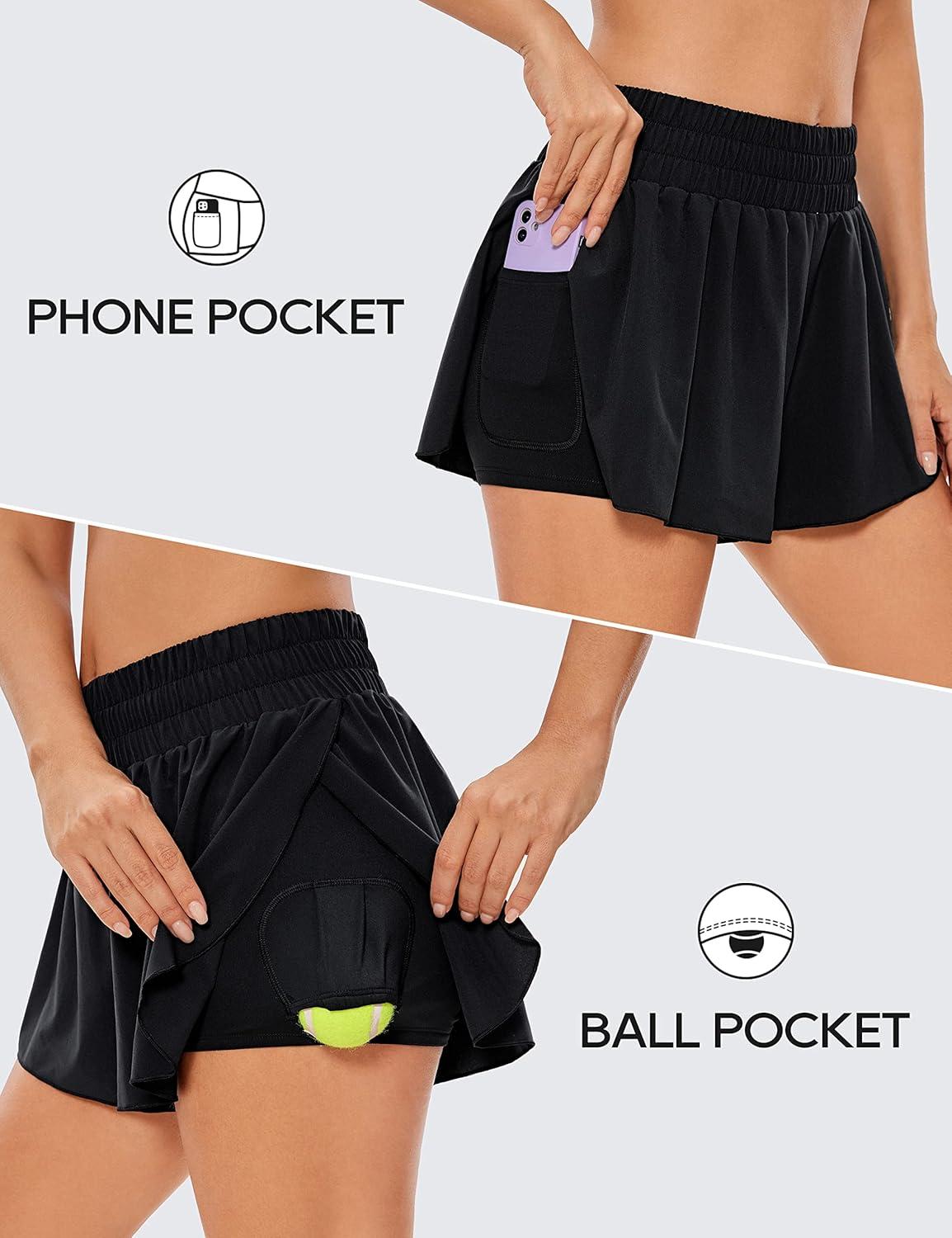 CRZ YOGA 2 in 1 Split Flowy Running Shorts for Women 3″ – High Waisted Quick Dry Skirts for Tennis Workout Athletic Lounge(Black)