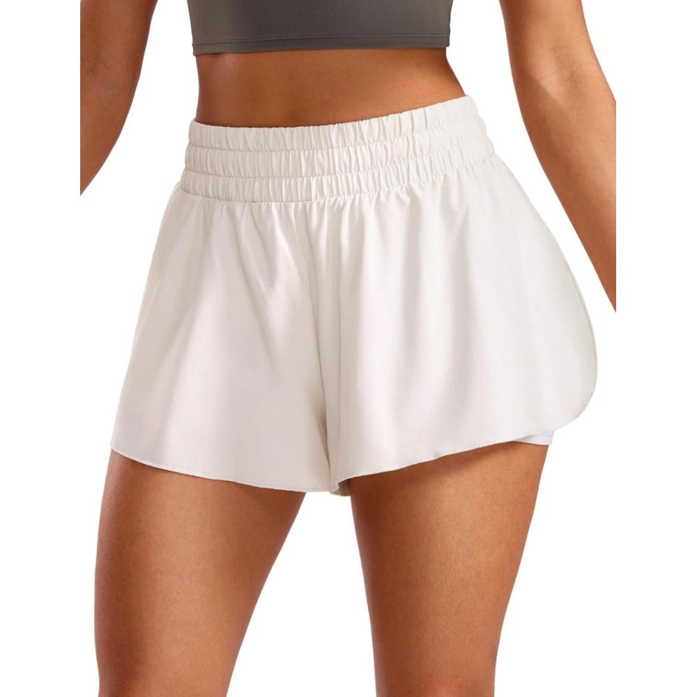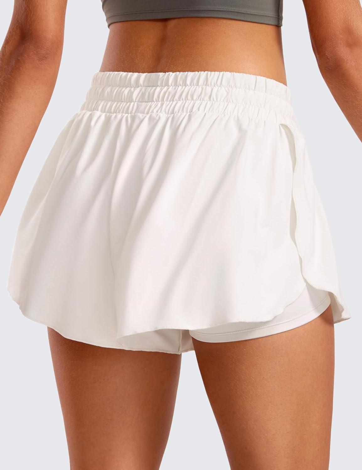 CRZ YOGA 2 in 1 Split Flowy Running Shorts for Women 3″ – High Waisted Quick Dry Skirts for Tennis Workout Athletic Lounge(Milky White (Bone))