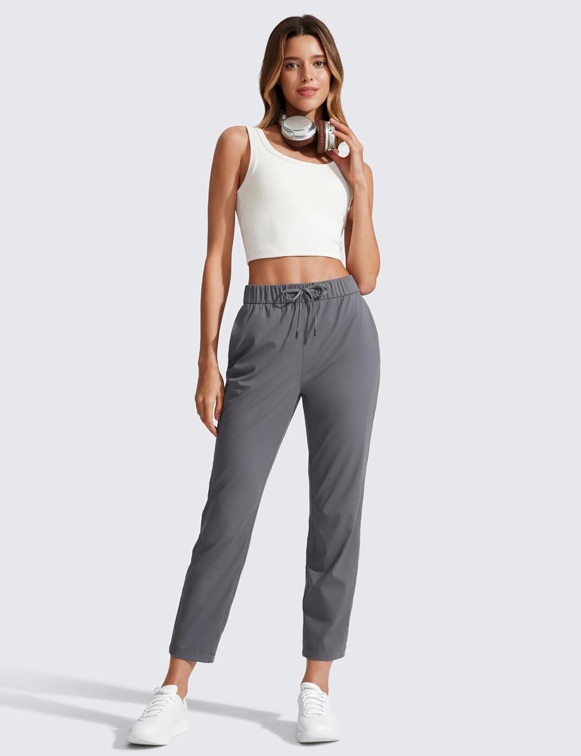 CRZ YOGA 4-Way Stretch Ankle Golf Pants for Women 27″ – Casual Dress Work 7/8 Sweatpants with Pockets(Dark Carbon)