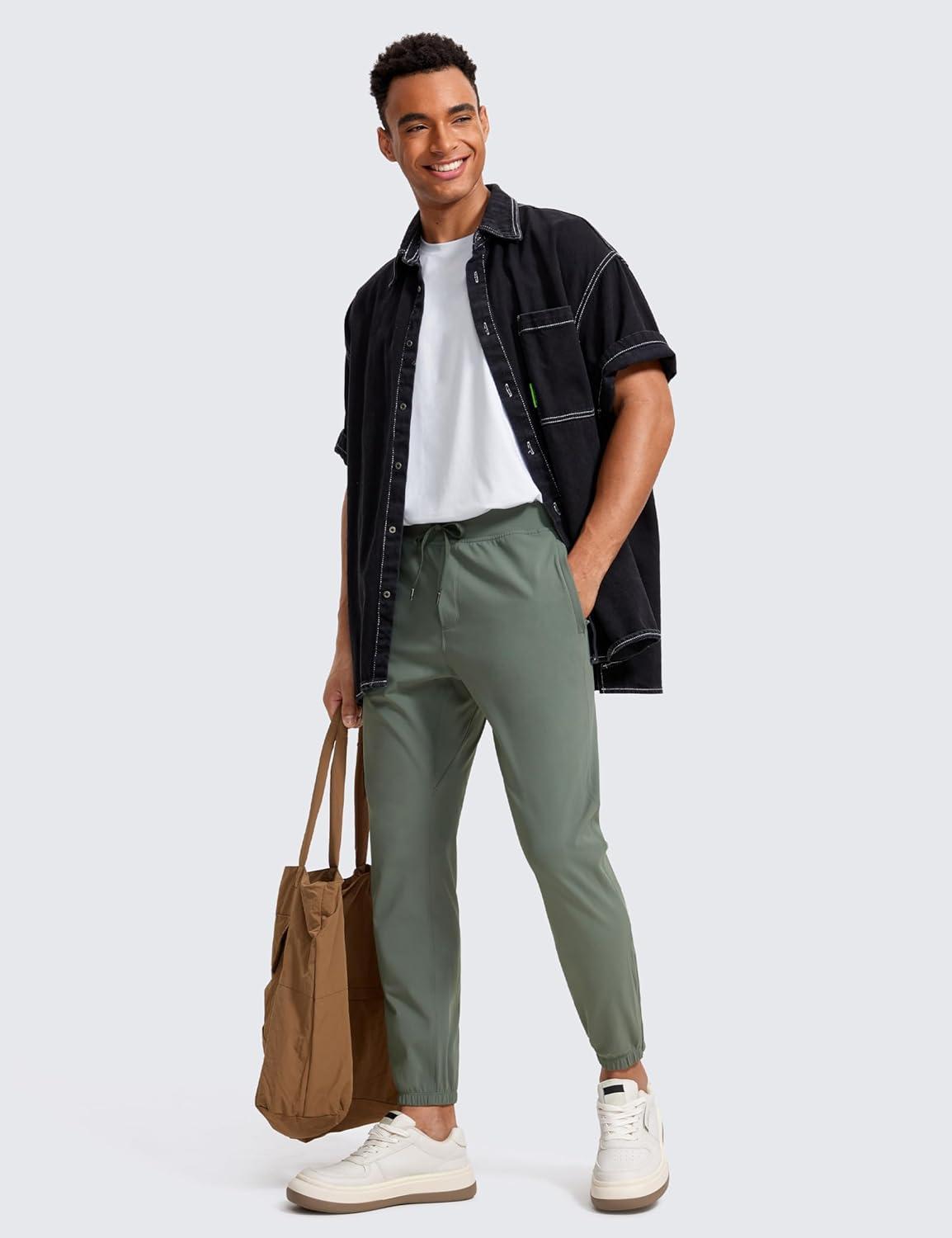 CRZ YOGA 4-Way Stretch Athletic Joggers for Men 28″ – Track Golf Gym Workout Hiking Pants with Pockets(Grey Sage)