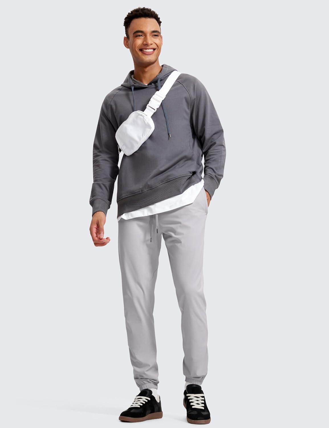 CRZ YOGA 4-Way Stretch Athletic Joggers for Men 30″/32″ – Track Golf Gym Workout Hiking Pants with Pockets(Gull Gray)