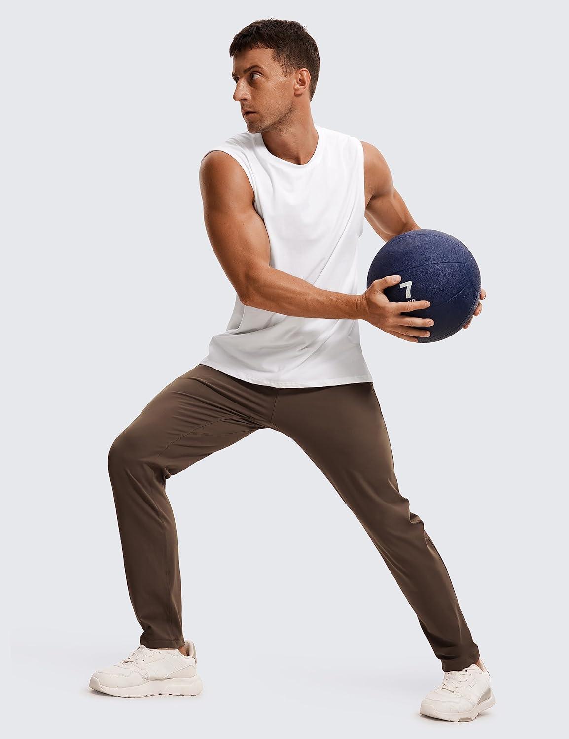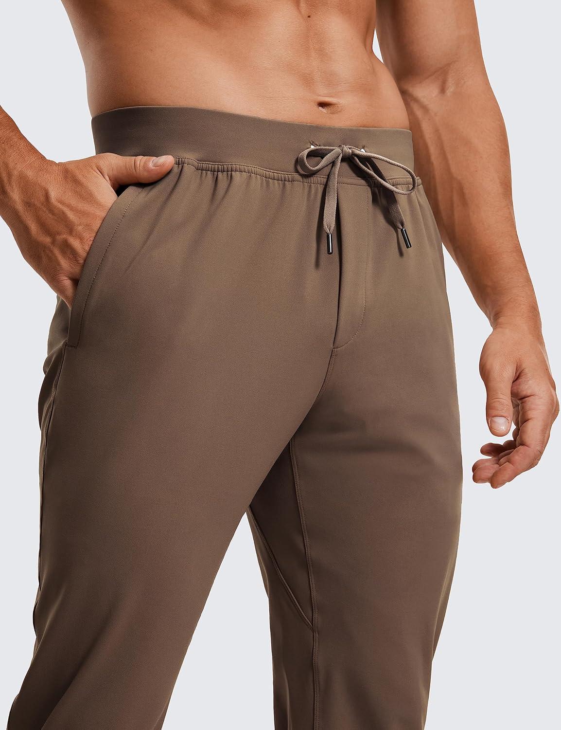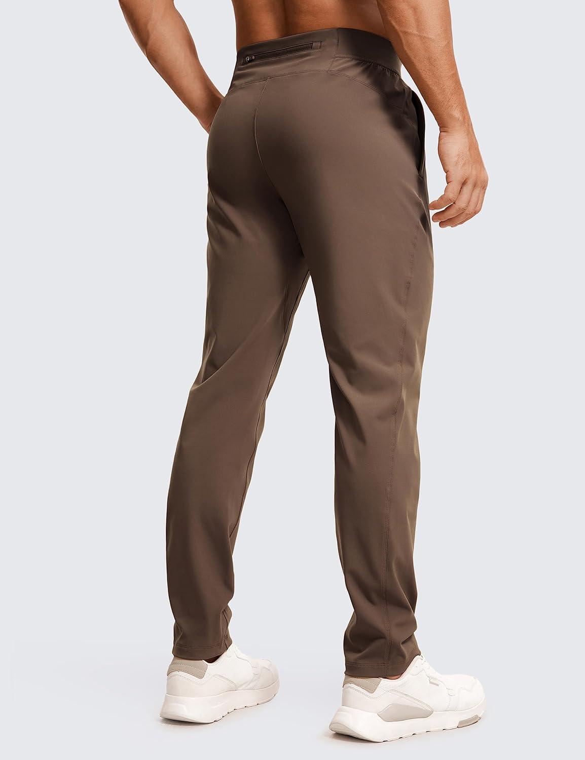 CRZ YOGA 4-Way Stretch Athletic Pants for Men 30″ – Workout Lounge Casual Work Jogger with Zip Pocket(Dark Olive Brown)