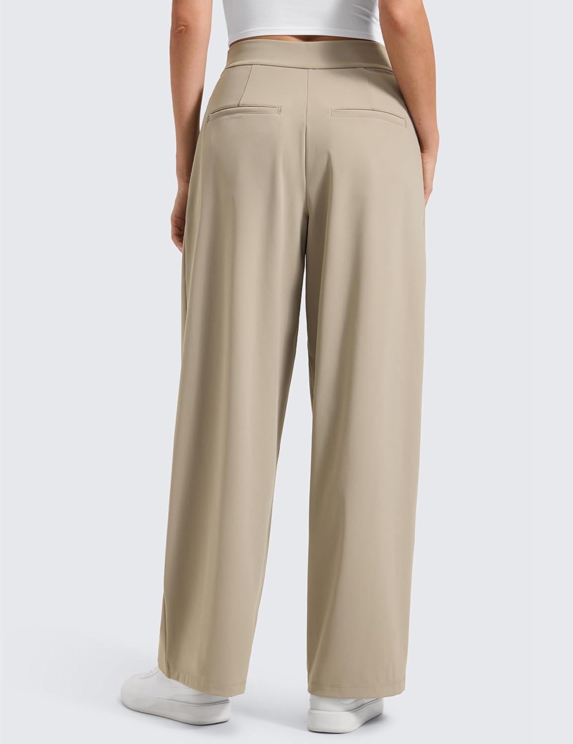 CRZ YOGA 4-Way Stretch Wide Leg Work Pants for Women 29″ – Bussiness Casual Dress Trousers with Pockets(Oak)
