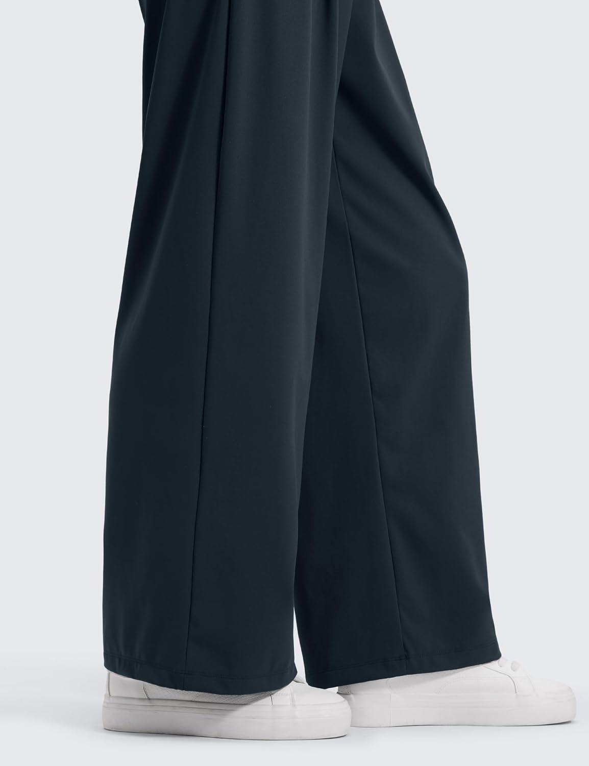 CRZ YOGA 4-Way Stretch Wide Leg Work Pants for Women 29″ – Bussiness Casual Dress Trousers with Pockets(True Navy)