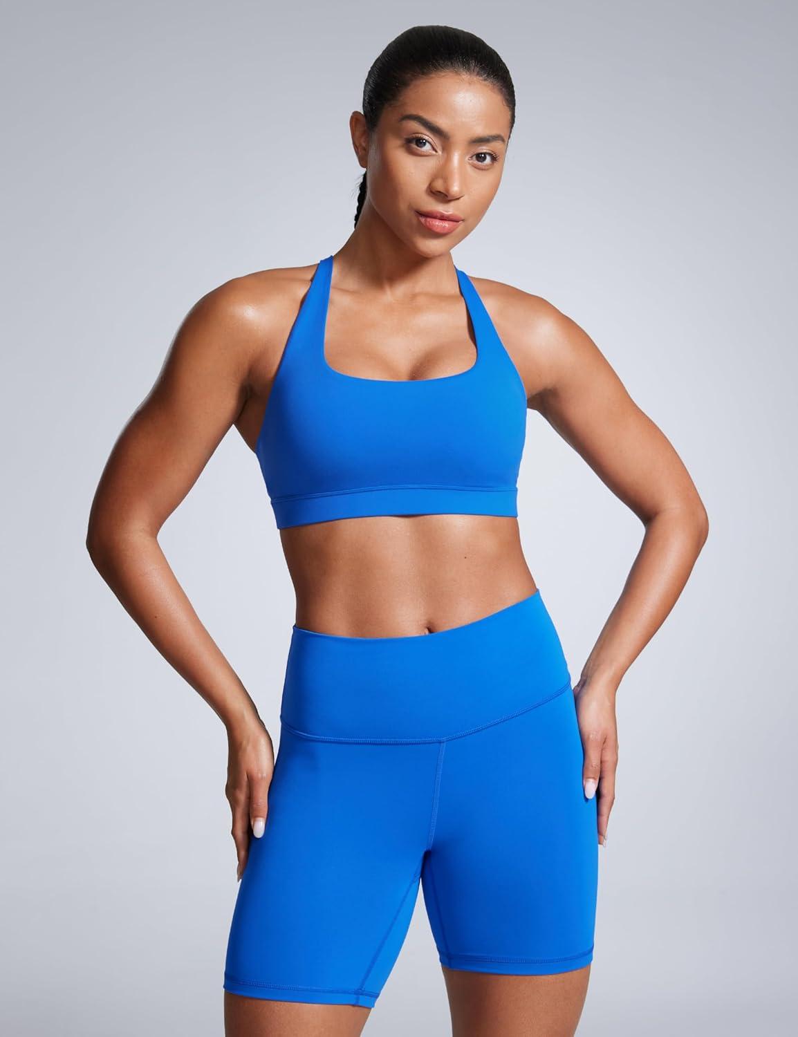CRZ YOGA Butterbreeze Square Neck Sports Bras for Women – Strappy Thin Straps Workout Traning Padded Gym Halter Cami Top(Sparkle Blue)