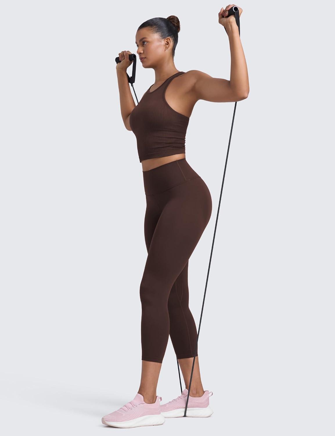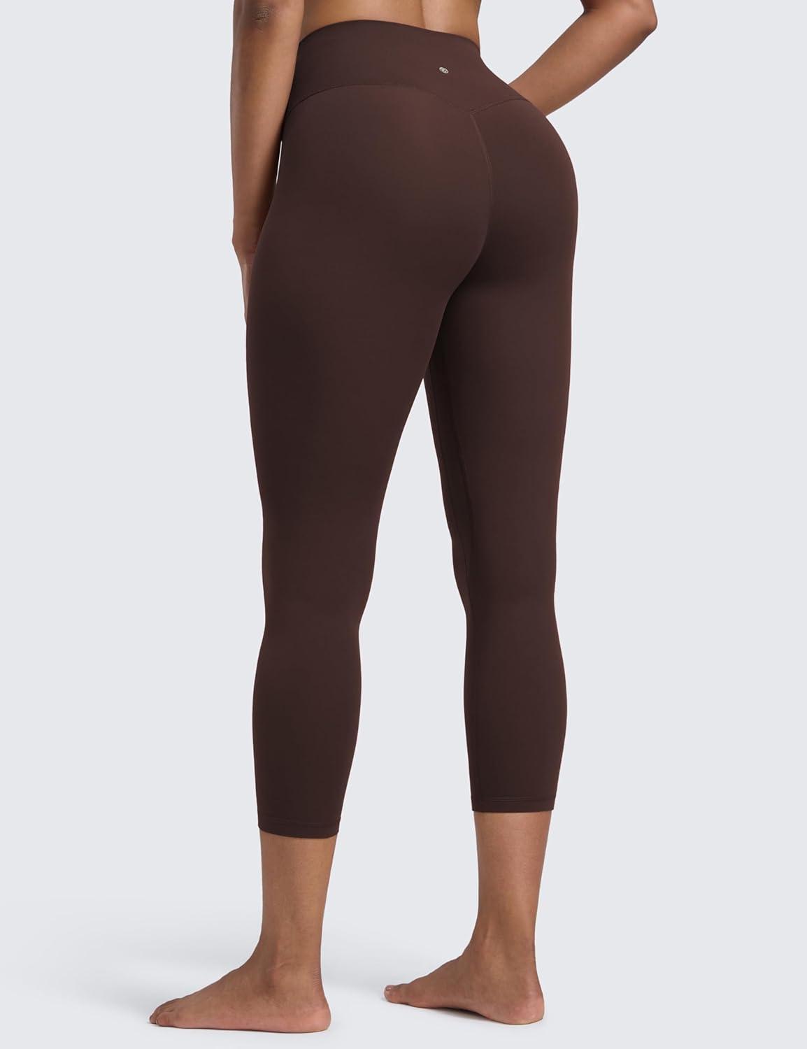 CRZ YOGA Butterlift Capris Workout Leggings 23″ – High Waisted Workout Pilates Crop Gym Athletic Womens Yoga Pants(Hot Fudge Brown)