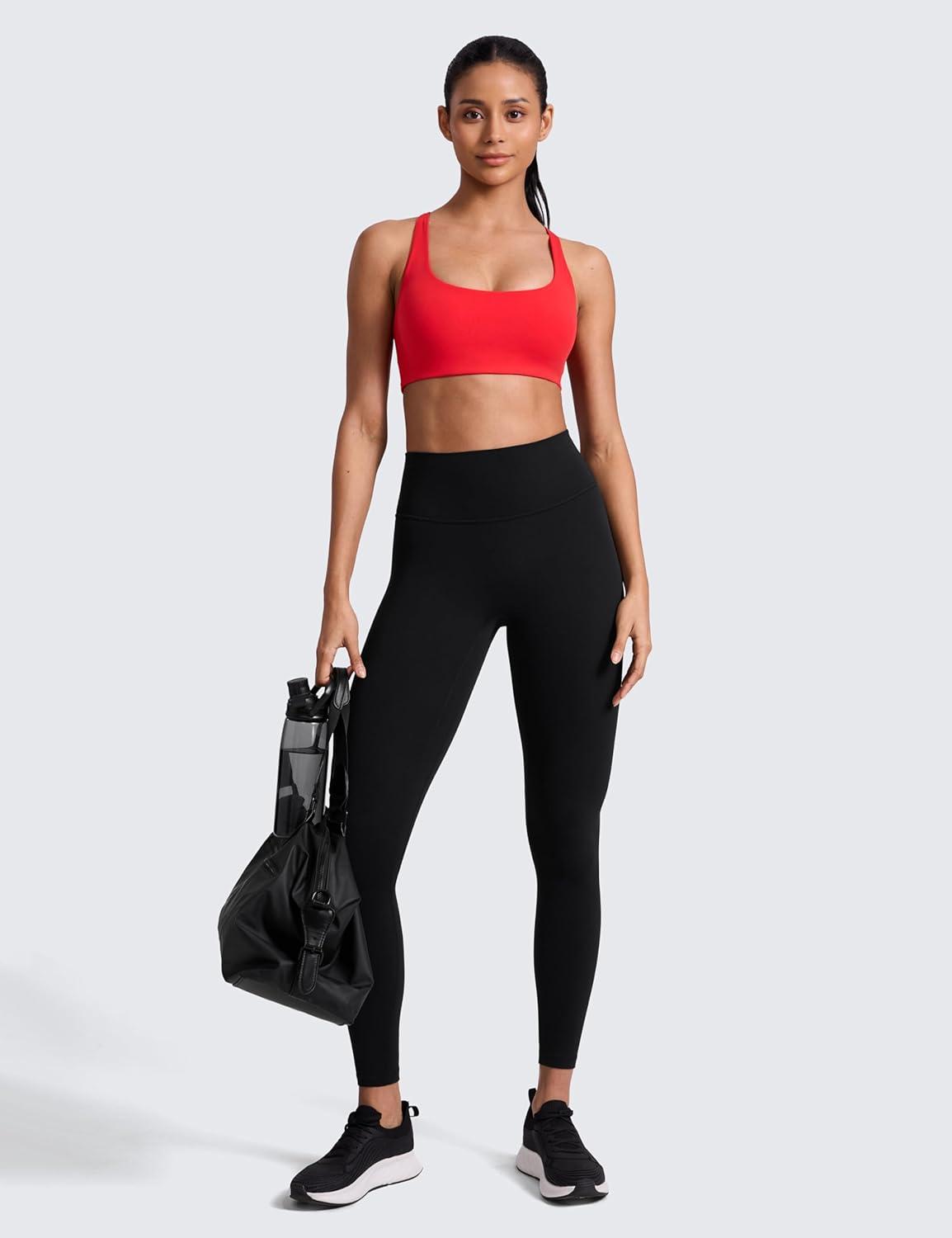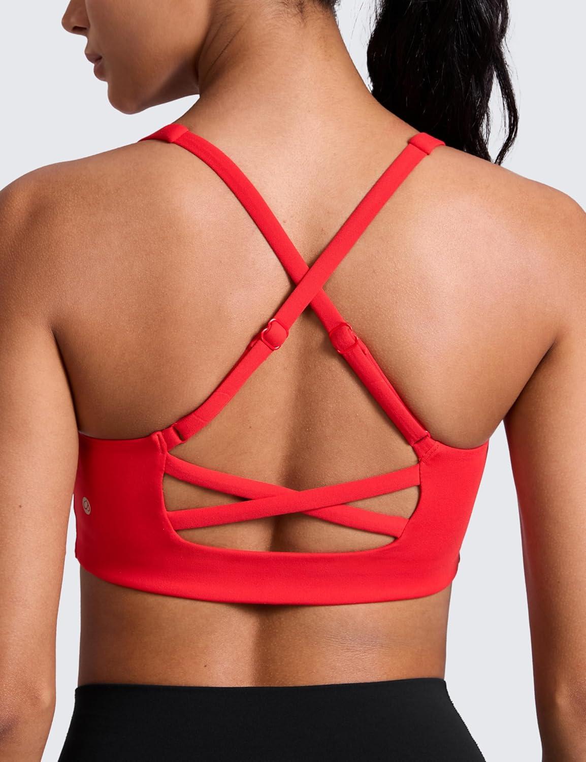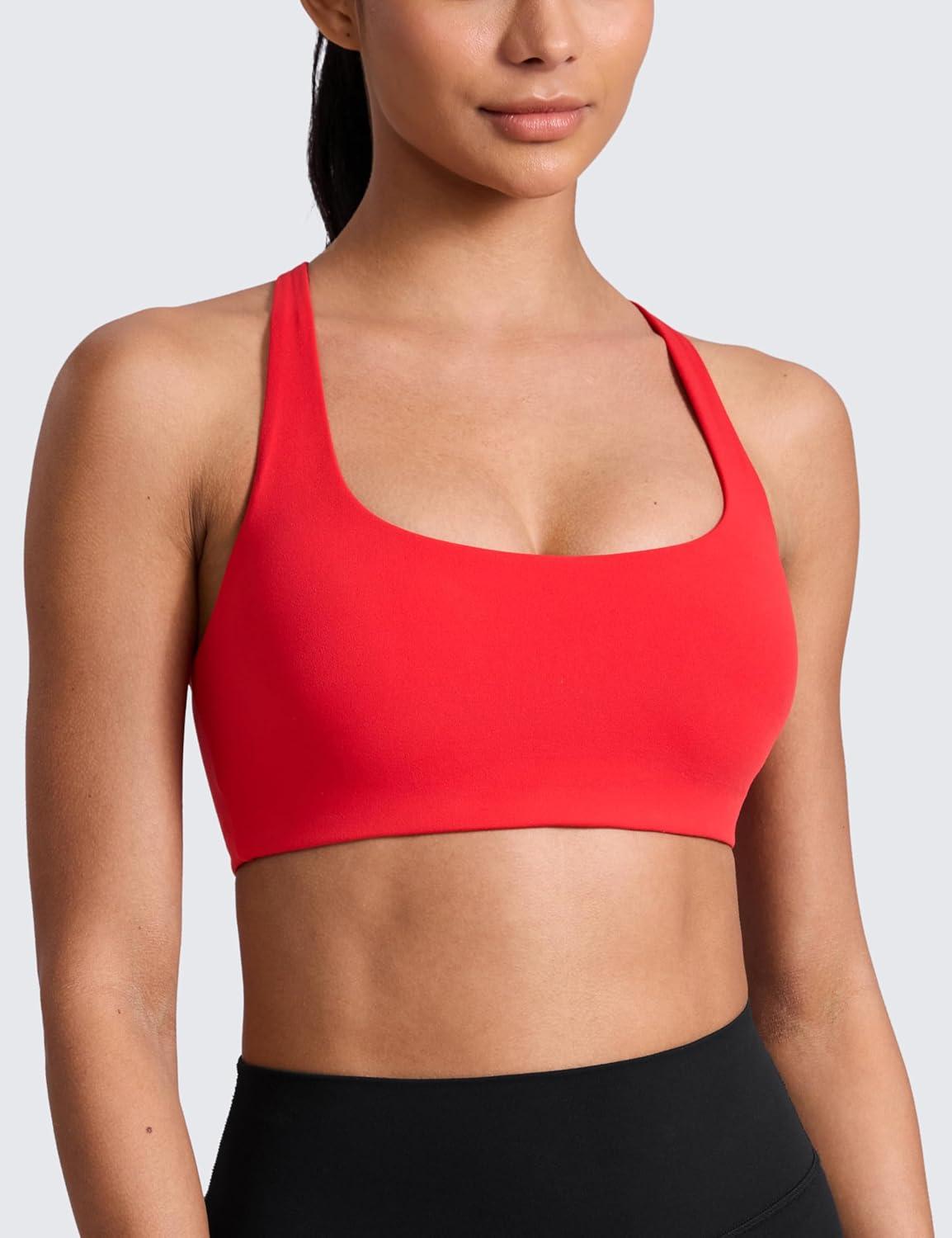 CRZ YOGA Butterlift Cross Back Sports Bras for Women – Scoop Neck Adjustable Straps Wireless Padded Pilates Workout Top(Deep Red)