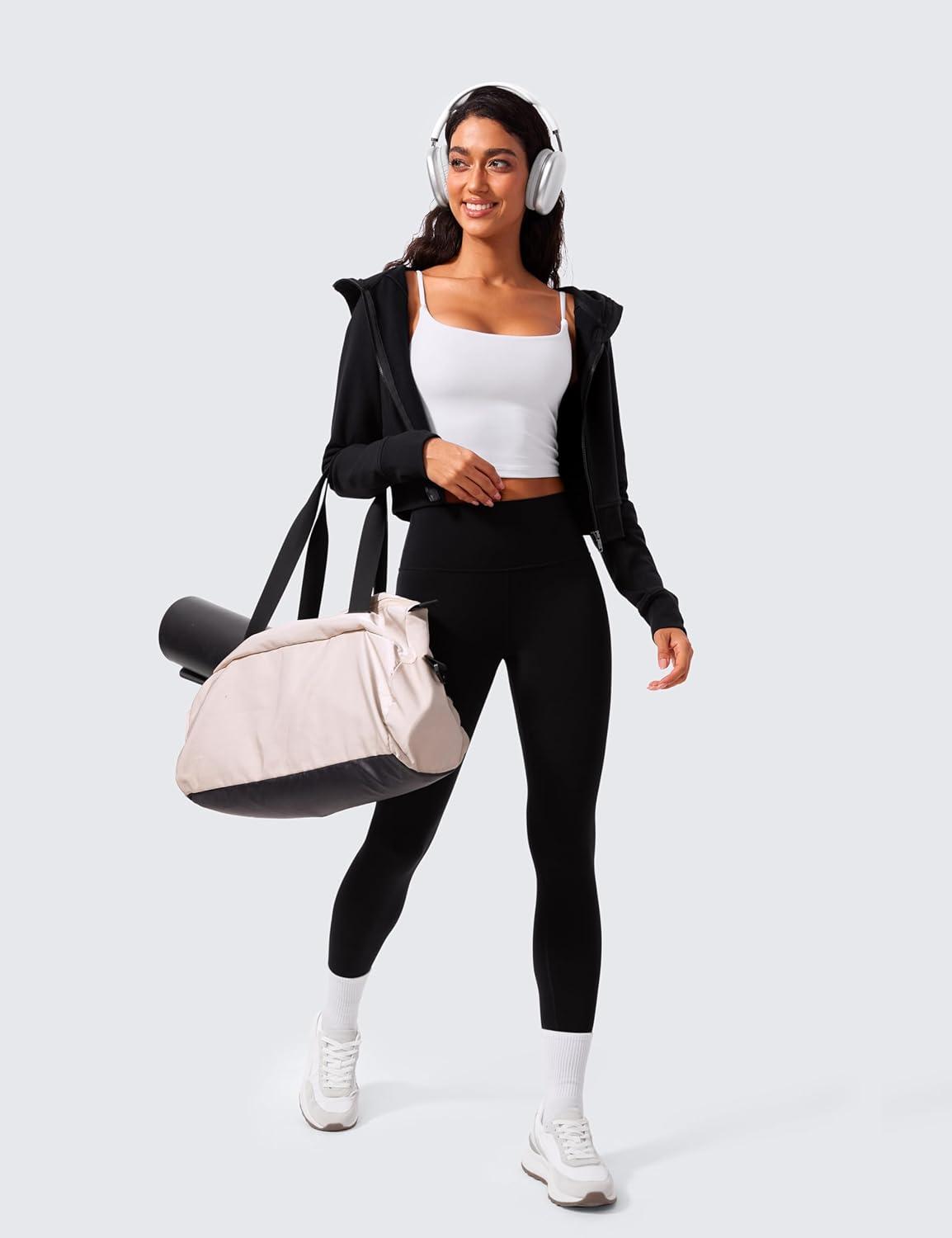 CRZ YOGA Butterlift Scoop Neck Crop Tank Tops for Women – Longline U Back Adjustable Straps Workout Sports Bras(White)