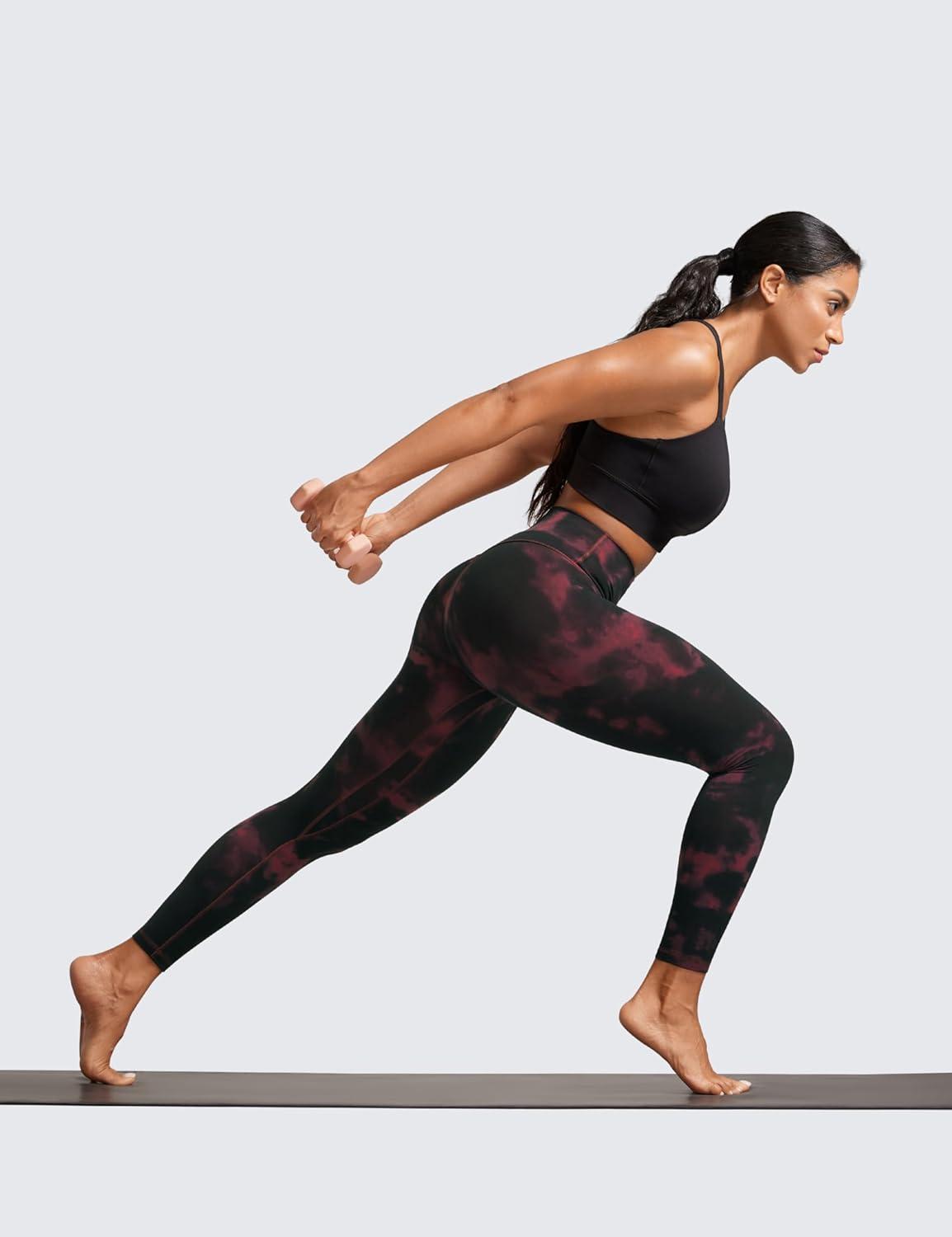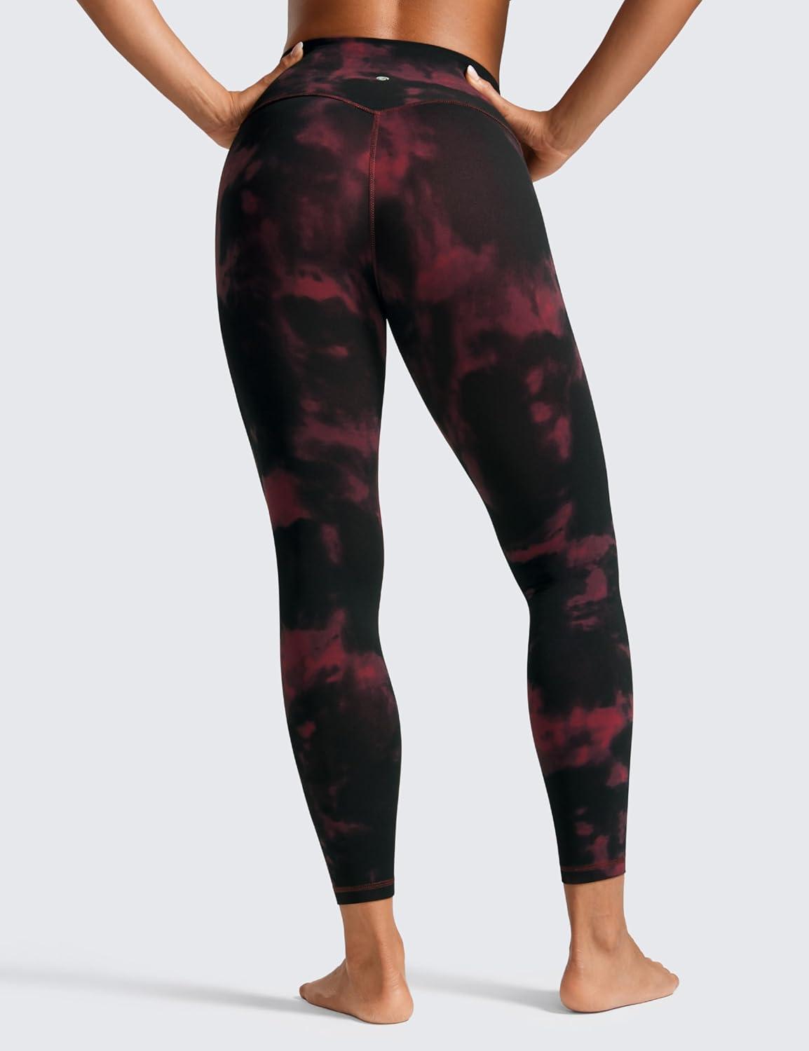 CRZ YOGA Butterlift Workout Leggings 25″ – High Waisted Pilates Gym Athletic Womens Yoga Pants Buttery Soft(Burgundy Tie Dye Flowers)