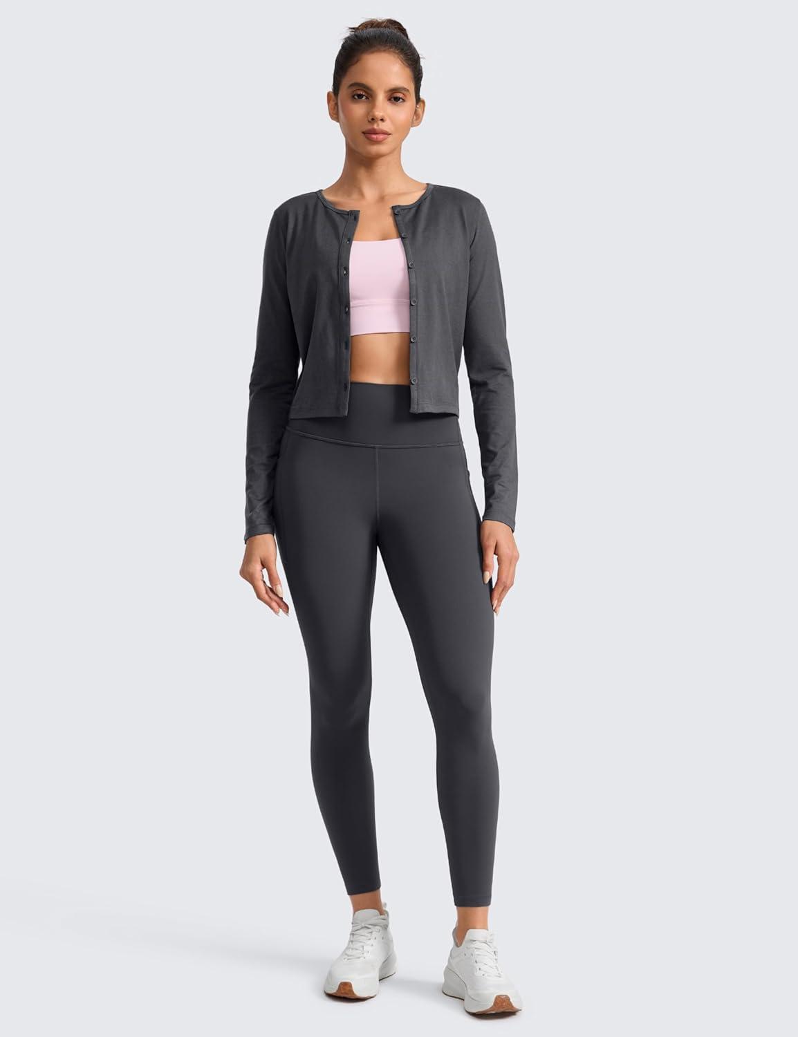 CRZ YOGA Butterlift Workout Leggings Pockets 25″ – High Waist Pilates Athletic Gym Womens Yoga Pants Buttery Soft(Mysterious Grey)