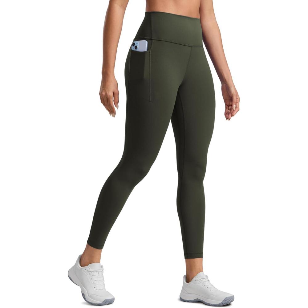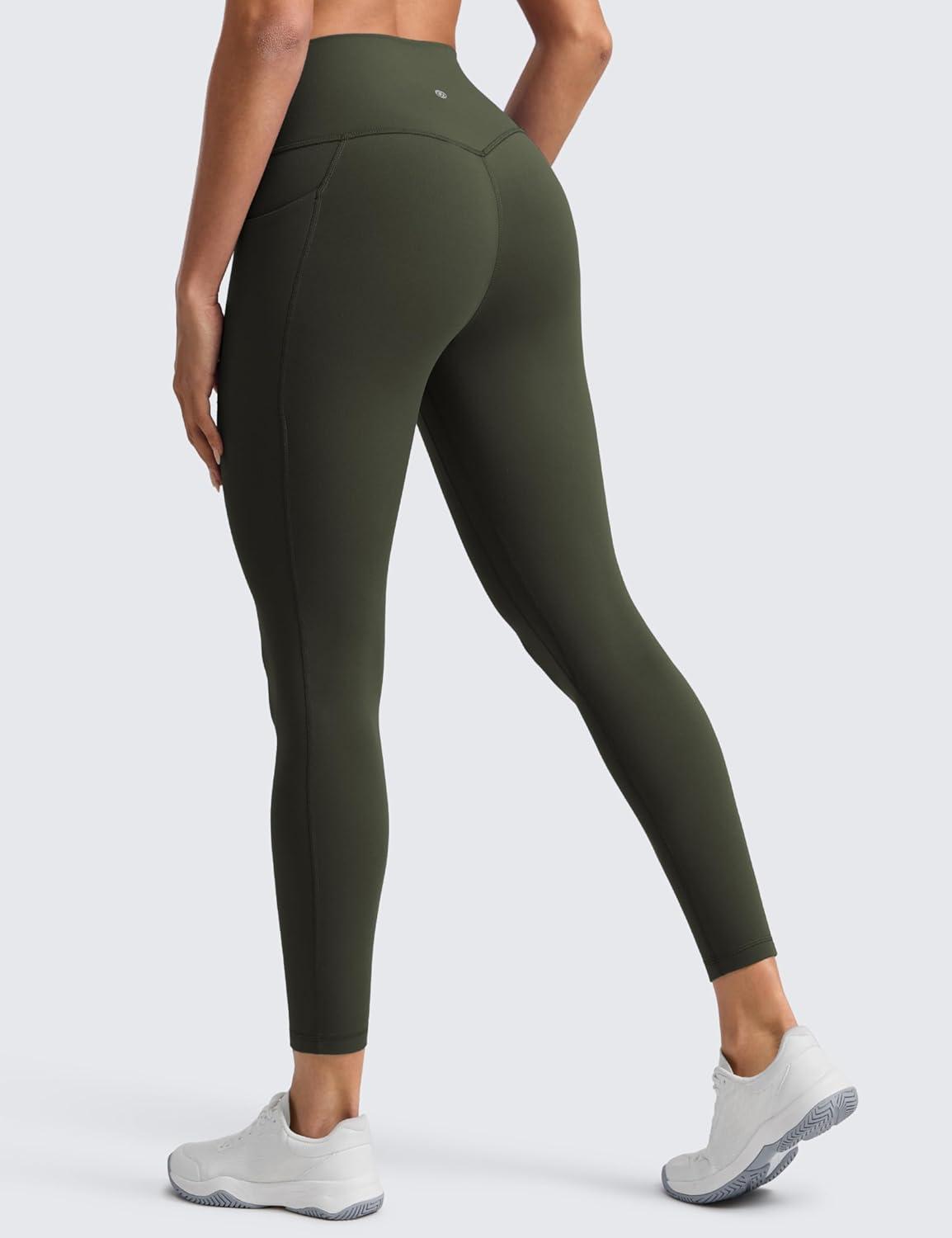 CRZ YOGA Butterlift Workout Leggings Pockets 25″ – High Waist Pilates Athletic Gym Womens Yoga Pants Buttery Soft(Olive Green)