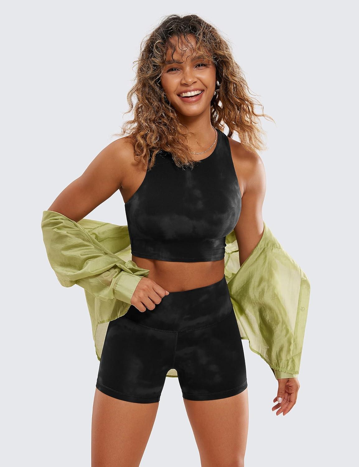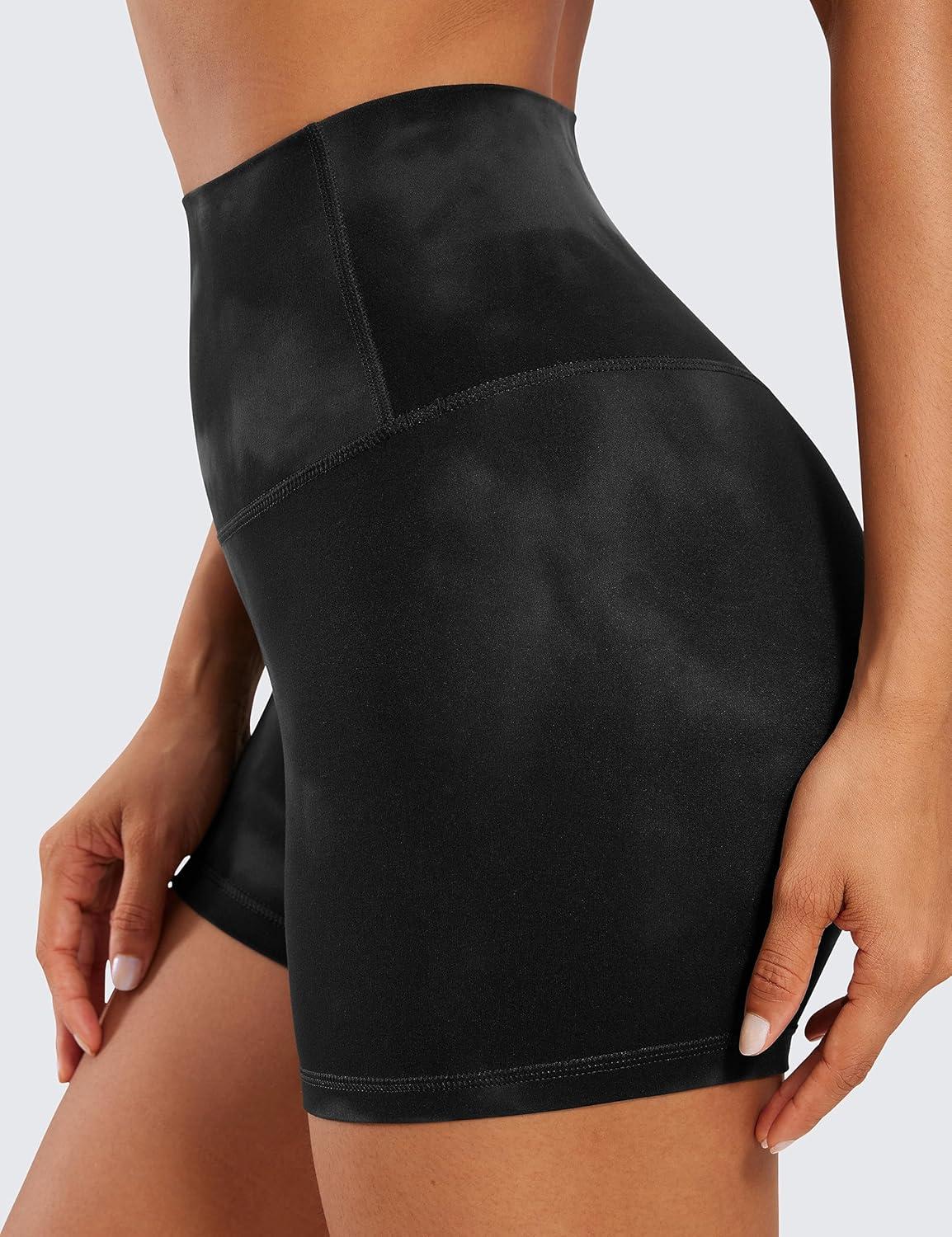 CRZ YOGA Butterluxe Biker Shorts 4” – High Waisted Booty Workout Volleyball Yoga Womens Spandex(Black Tie Dye Flowers)