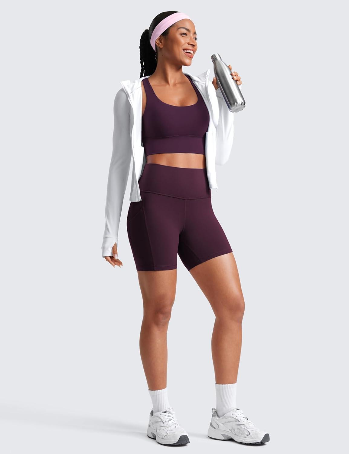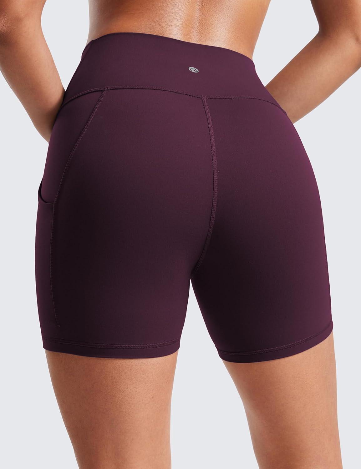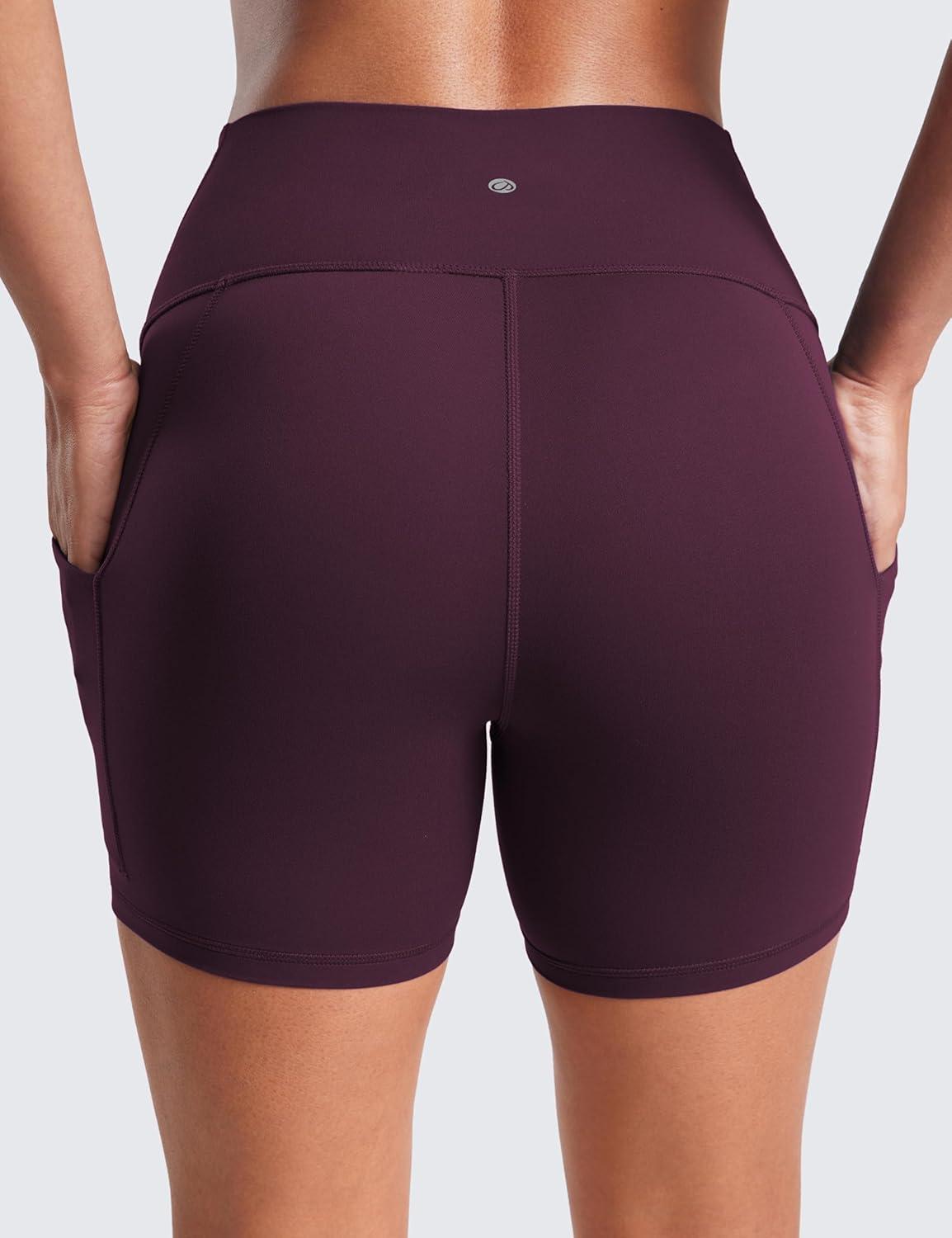 CRZ YOGA Butterluxe Biker Shorts Pockets 5″ – High Waisted Volleyball Workout Athletic Yoga Womens(Deep Purple)