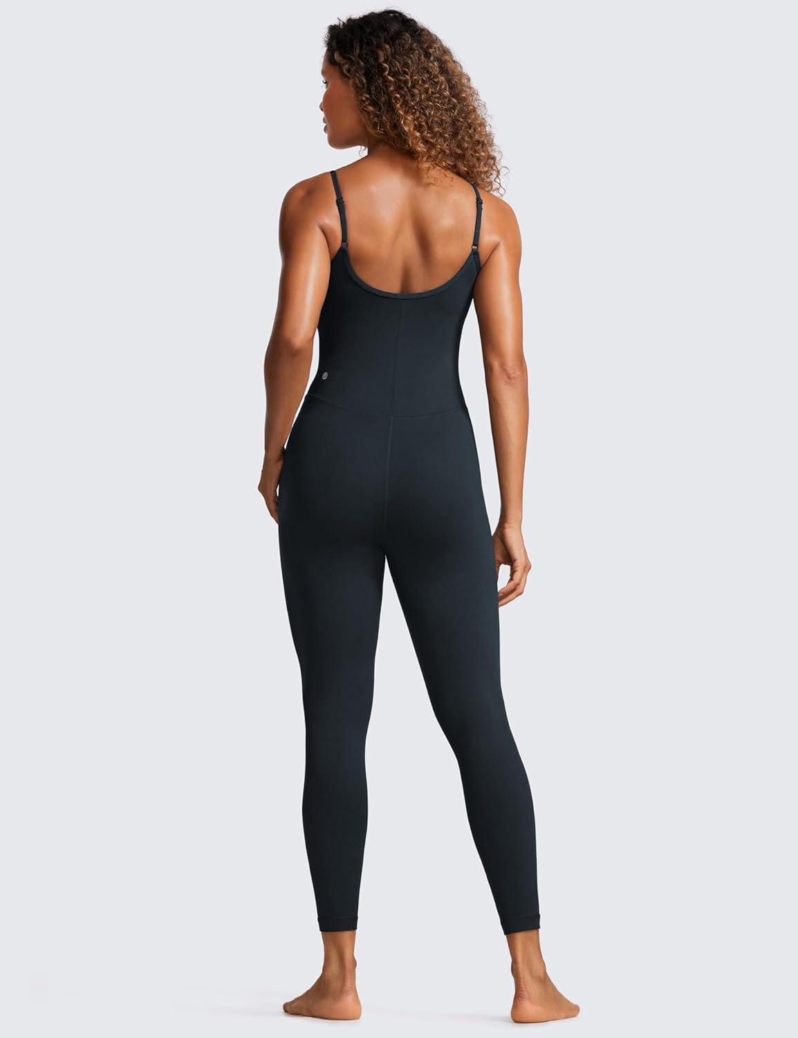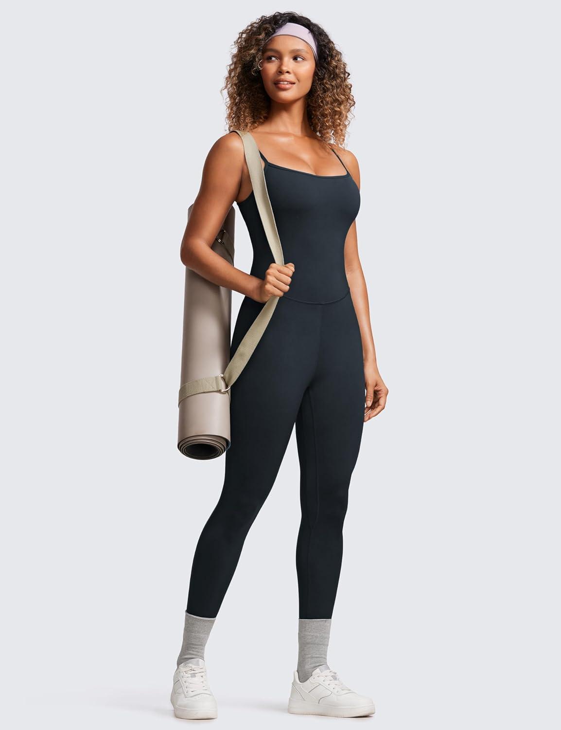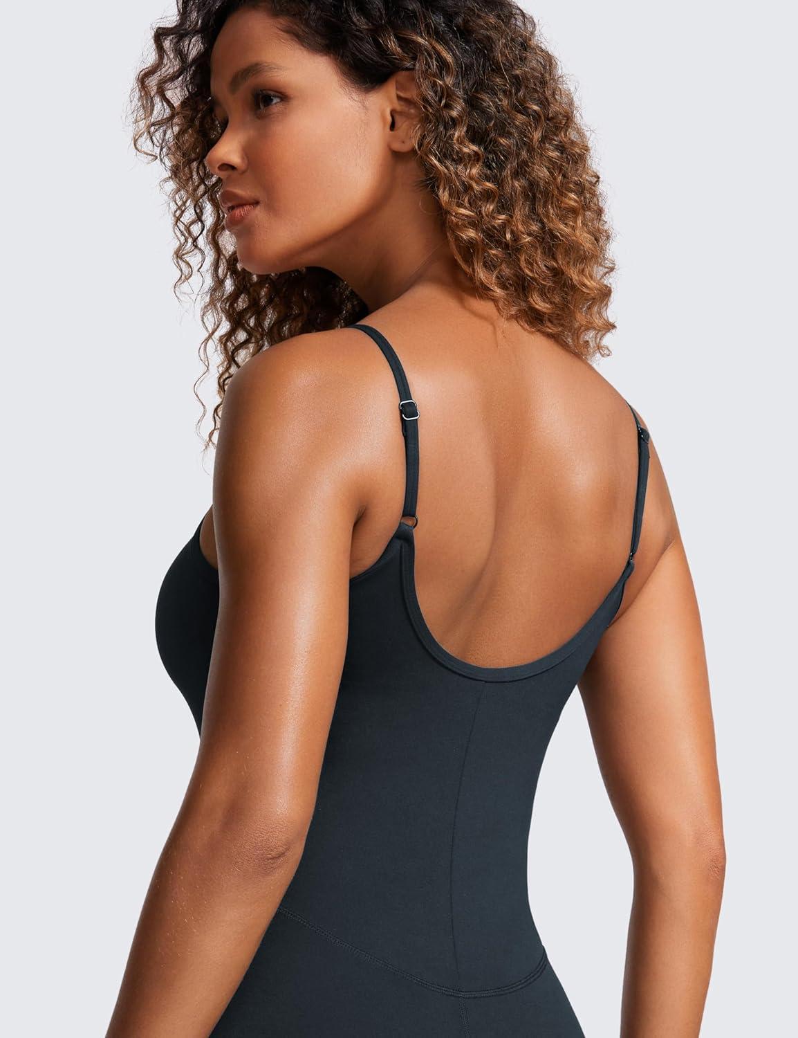 CRZ YOGA Butterluxe Cami Strap Jumpsuits for Women – Adjustable Yoga Workout One Piece Tank Leggings Romper with Built-in Bra(True Navy)
