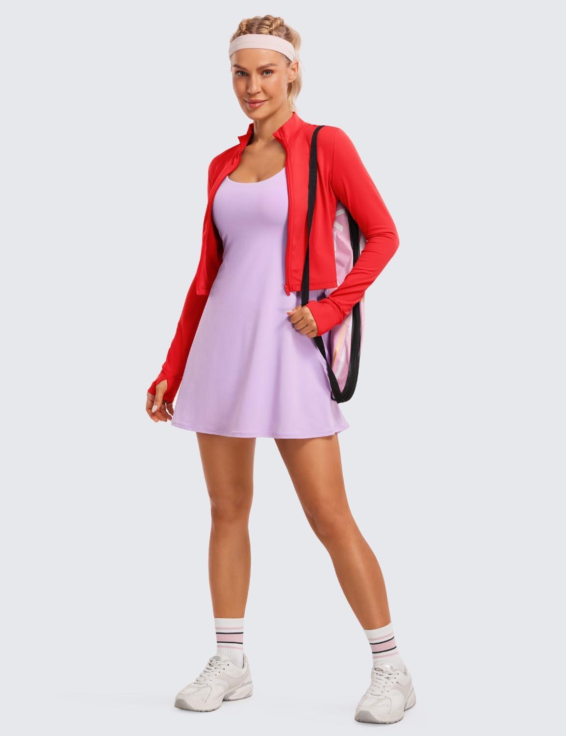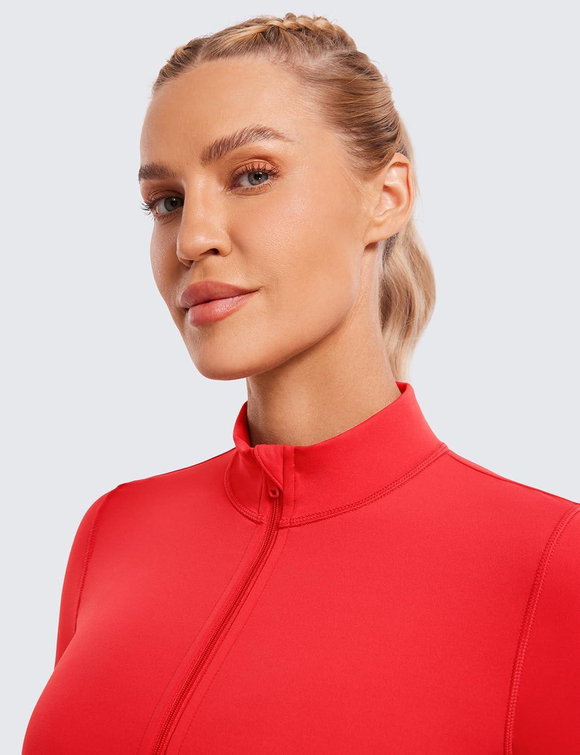 CRZ YOGA Butterluxe Cropped Athletic Jackets for Women – Full Zip Up Track Tops with Thumb Holes Pockets(Deep Red)