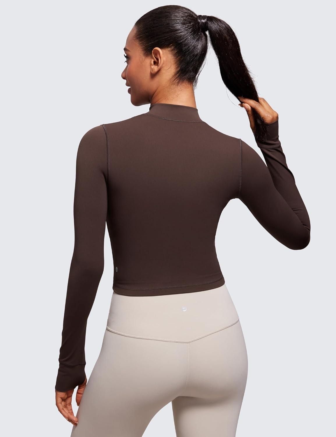 CRZ YOGA Butterluxe Cropped Athletic Jackets for Women – Full Zip Up Track Tops with Thumb Holes Pockets(Hot Fudge Brown)