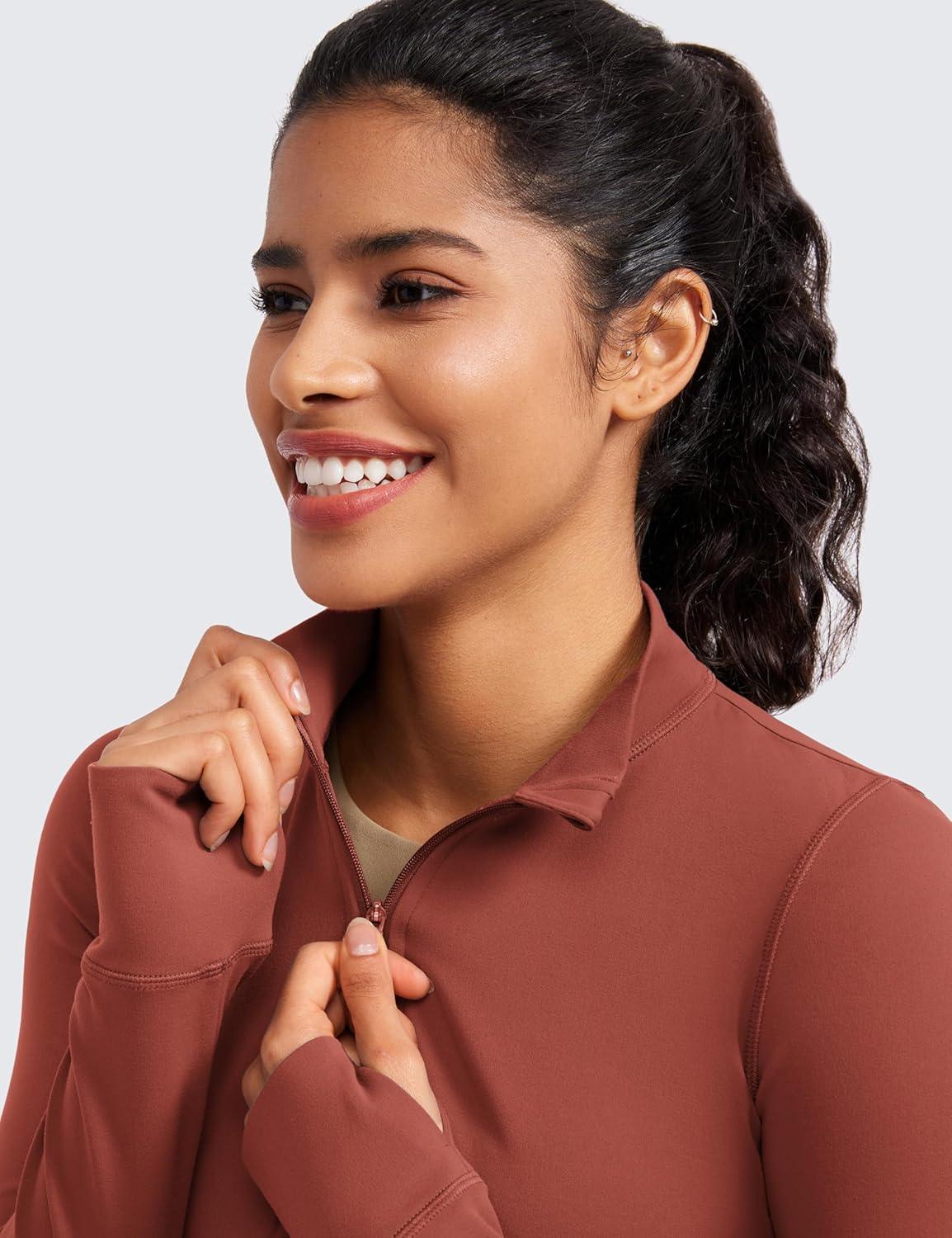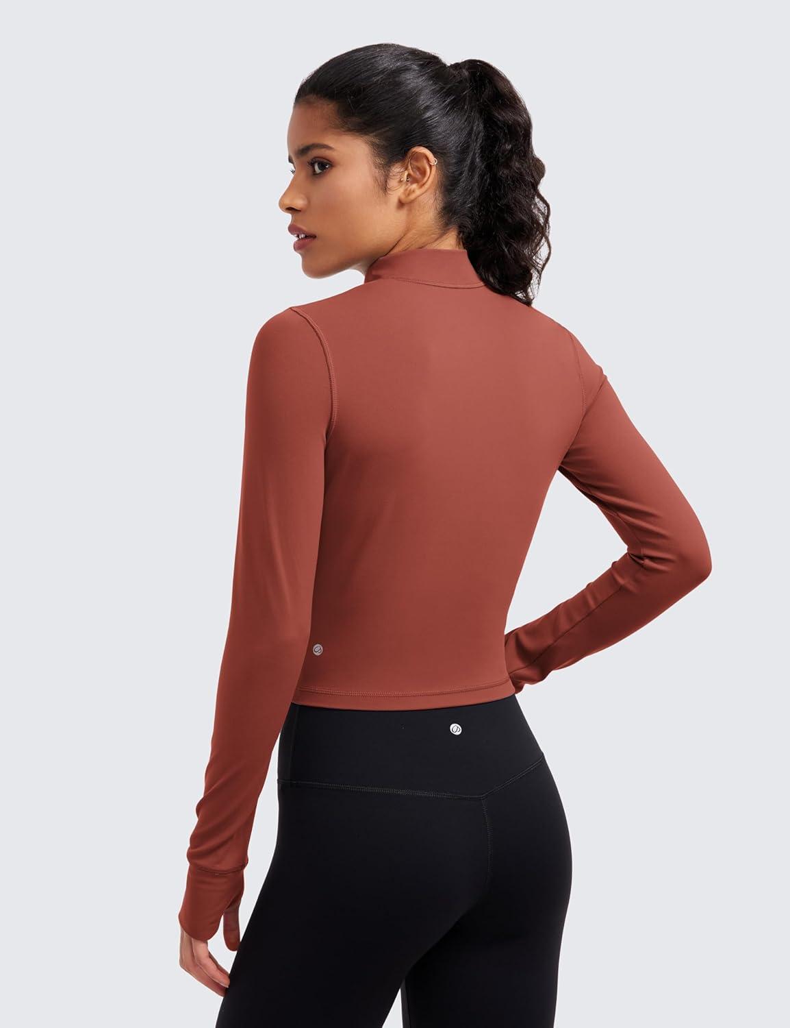 CRZ YOGA Butterluxe Cropped Athletic Jackets for Women – Full Zip Up Track Tops with Thumb Holes Pockets(Jujube Brown)