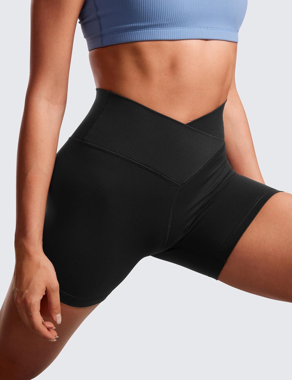 CRZ YOGA Butterluxe Crossover Biker Shorts 5″ – Criss Cross High Waisted Workout Yoga Buttery Soft Womens(Black)