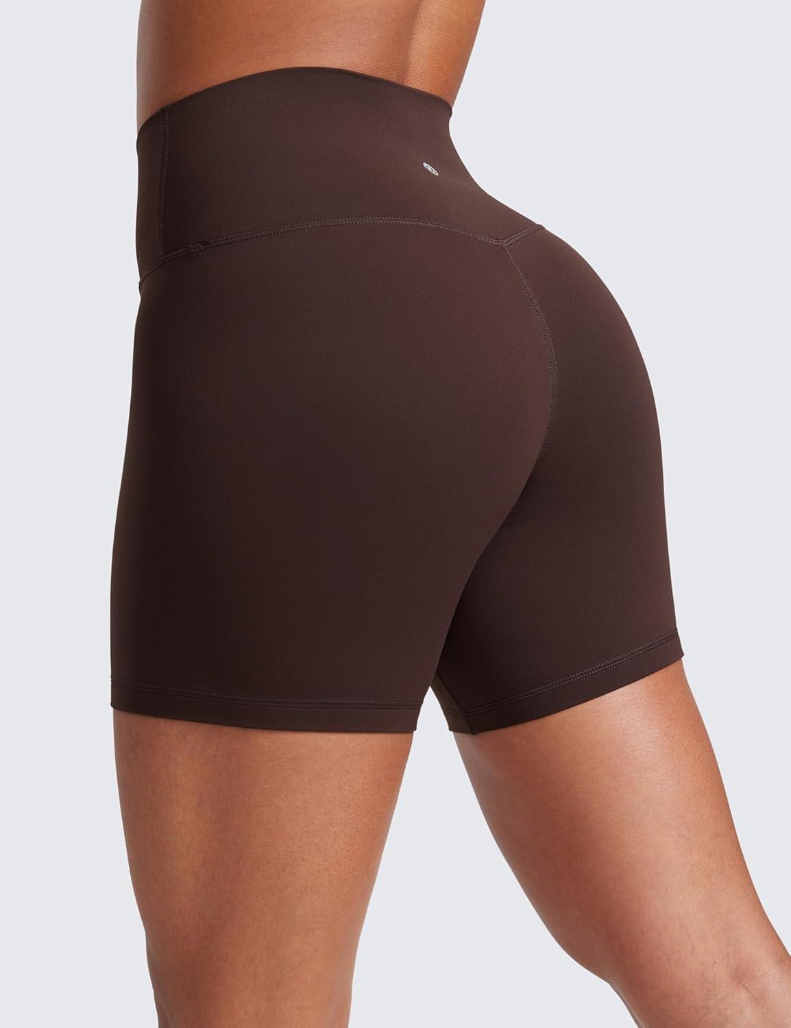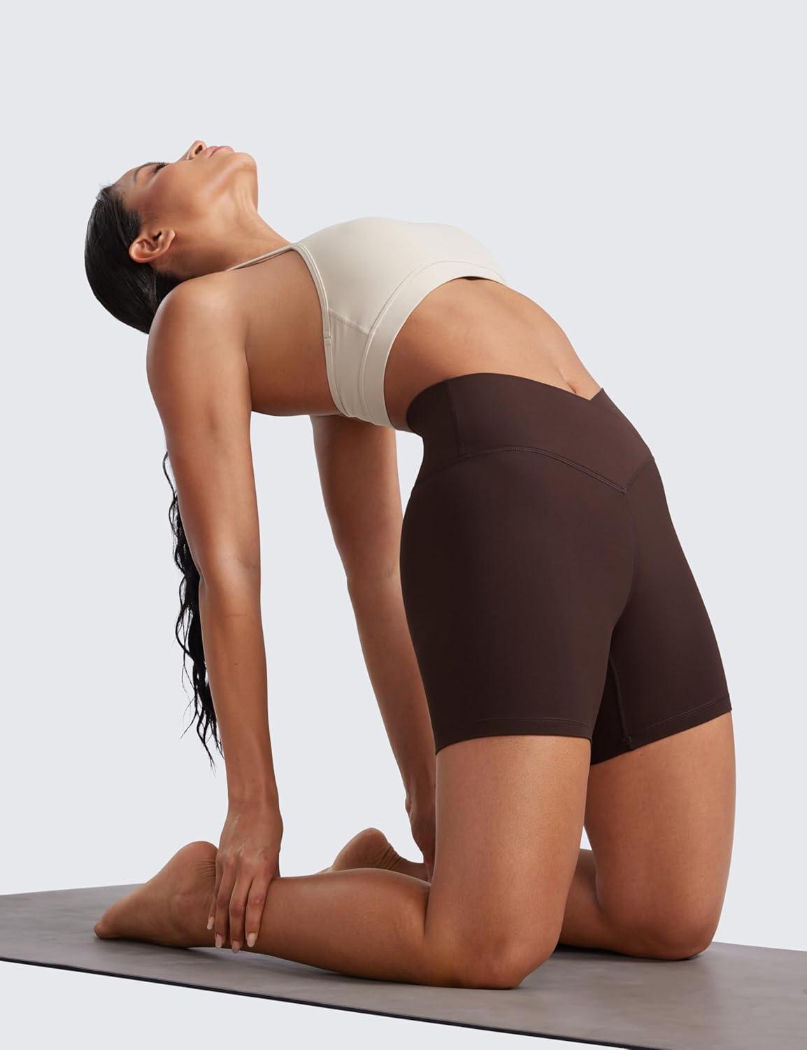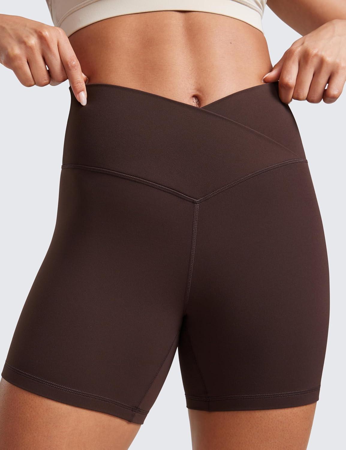 CRZ YOGA Butterluxe Crossover Biker Shorts 5″ – Criss Cross High Waisted Workout Yoga Buttery Soft Womens(Hot Fudge Brown)