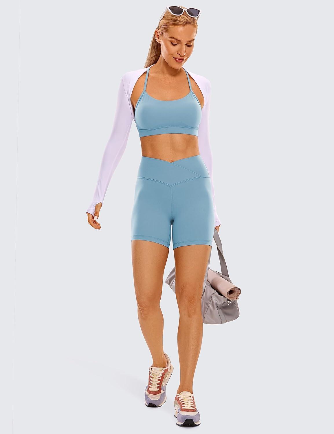 CRZ YOGA Butterluxe Crossover Biker Shorts 5″ – Criss Cross High Waisted Workout Yoga Buttery Soft Womens(Pure Blue)