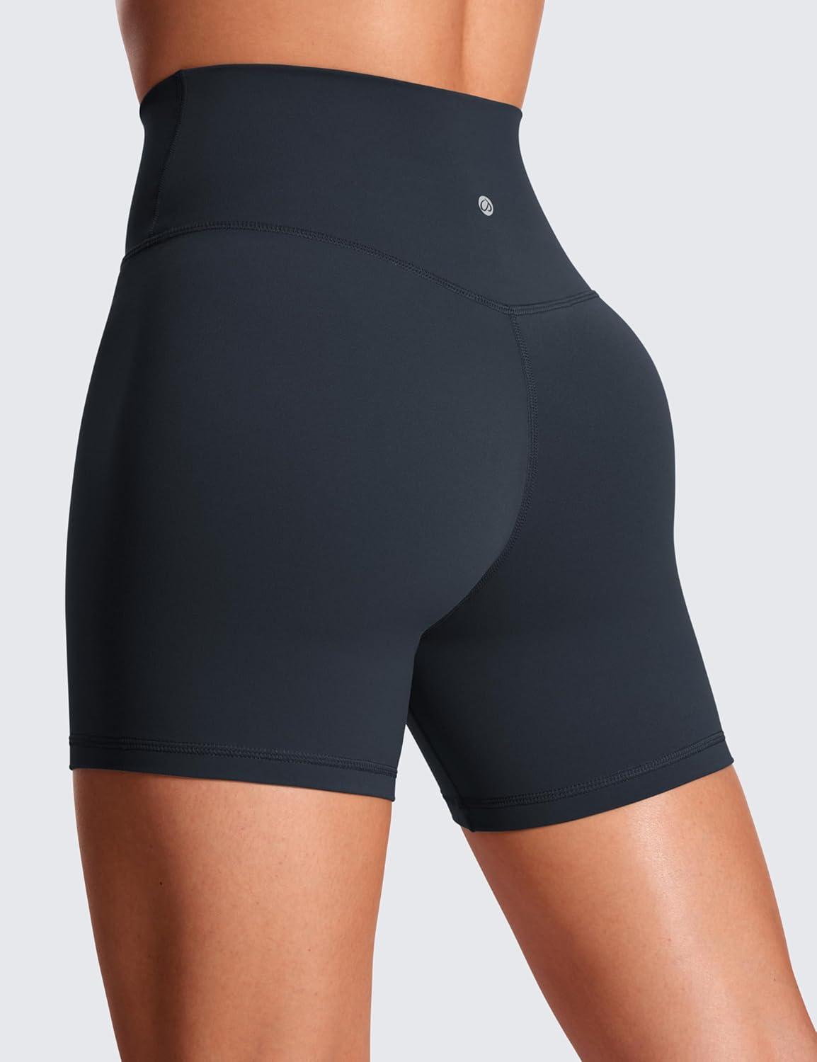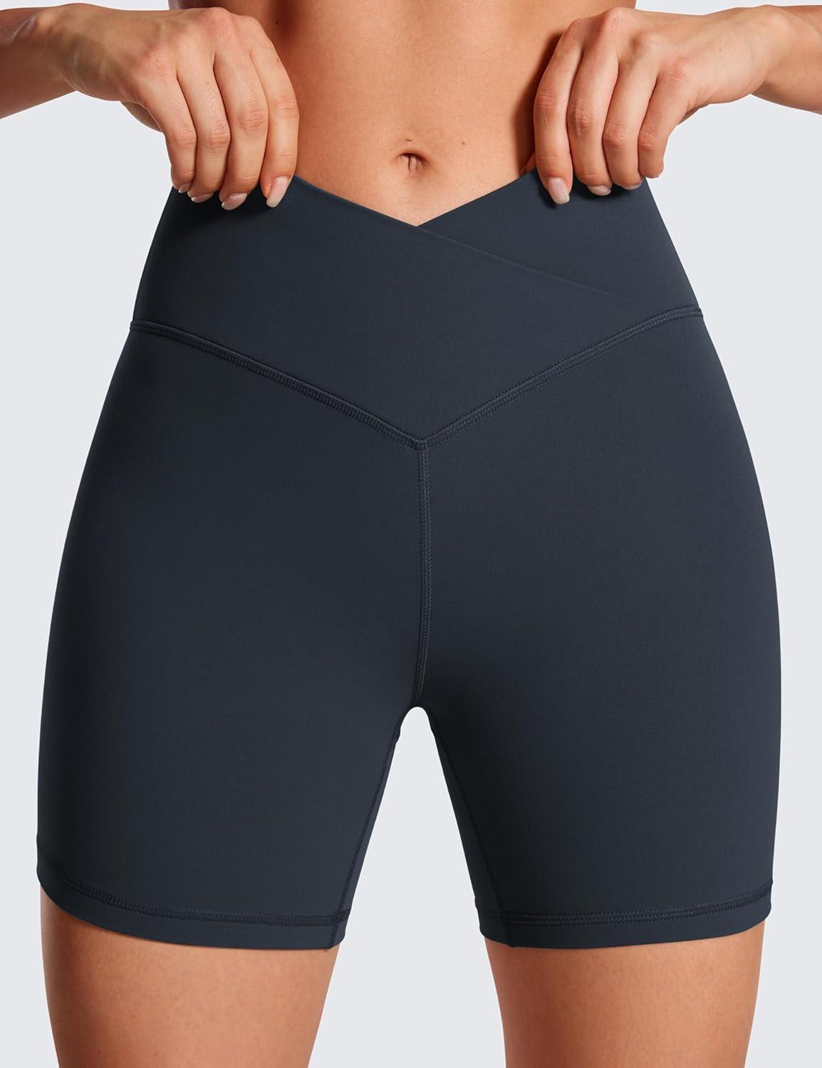CRZ YOGA Butterluxe Crossover Biker Shorts 5″ – Criss Cross High Waisted Workout Yoga Buttery Soft Womens(True Navy)