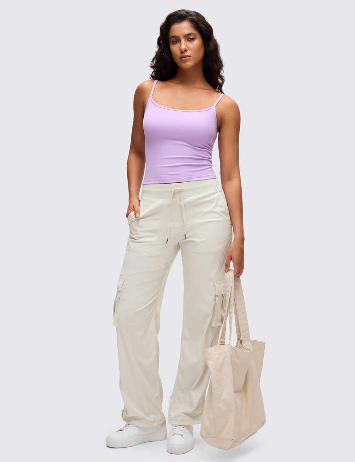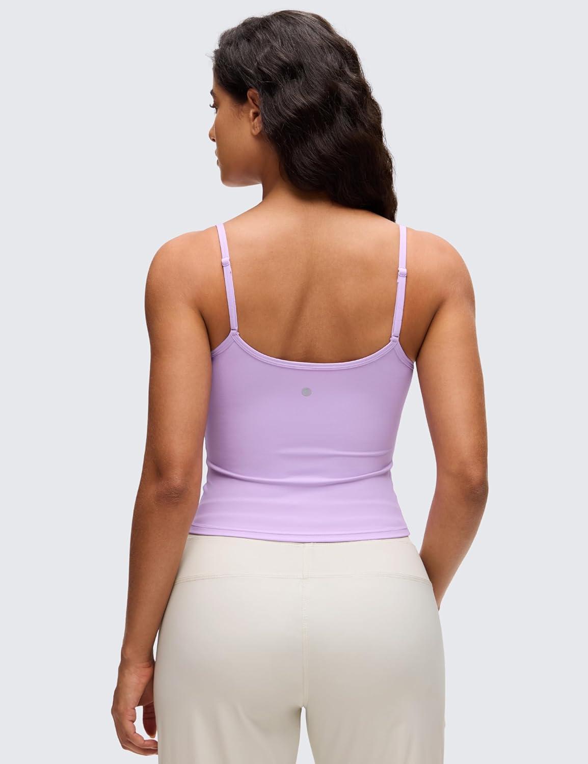 CRZ YOGA Butterluxe Double Lined Cami Tank Tops for Women – Yoga Casual Going Out Soft Scoop Neck Summer Sleeveless Shirt(Elfin Purple)