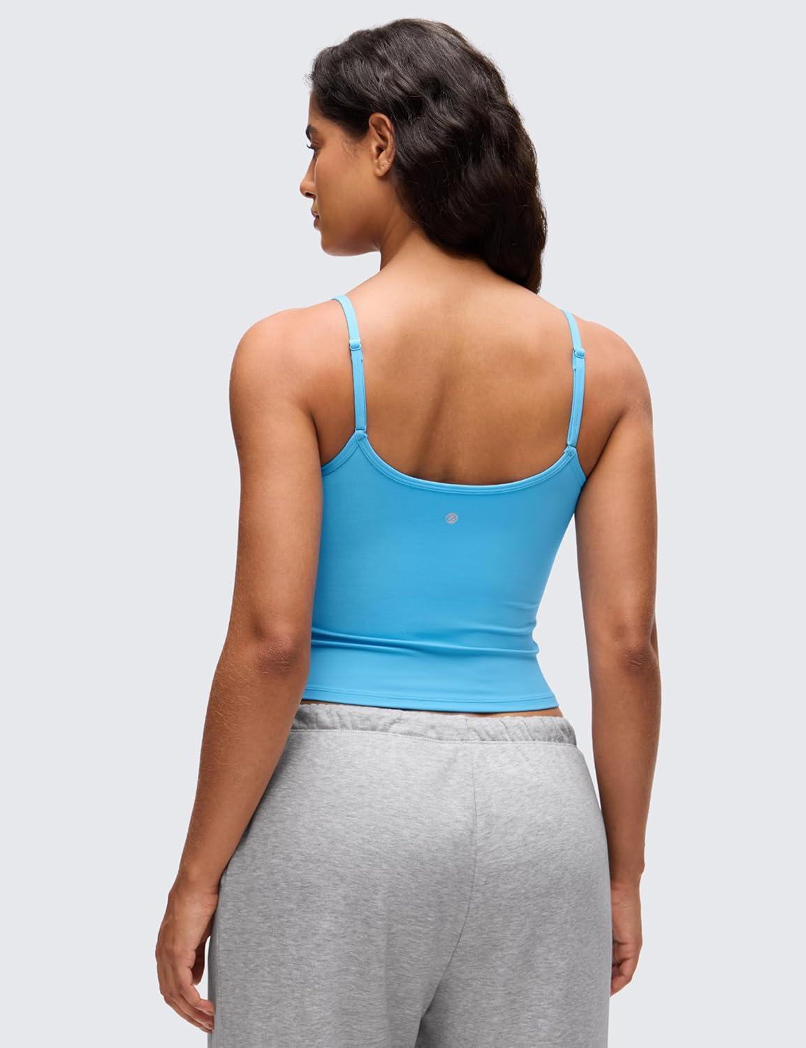 CRZ YOGA Butterluxe Double Lined Cami Tank Tops for Women – Yoga Casual Going Out Soft Scoop Neck Summer Sleeveless Shirt(Kayak Blue)