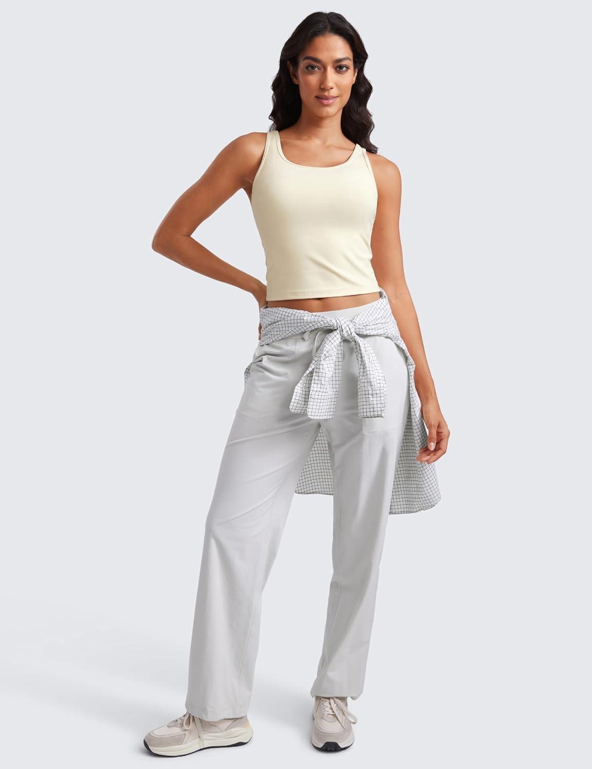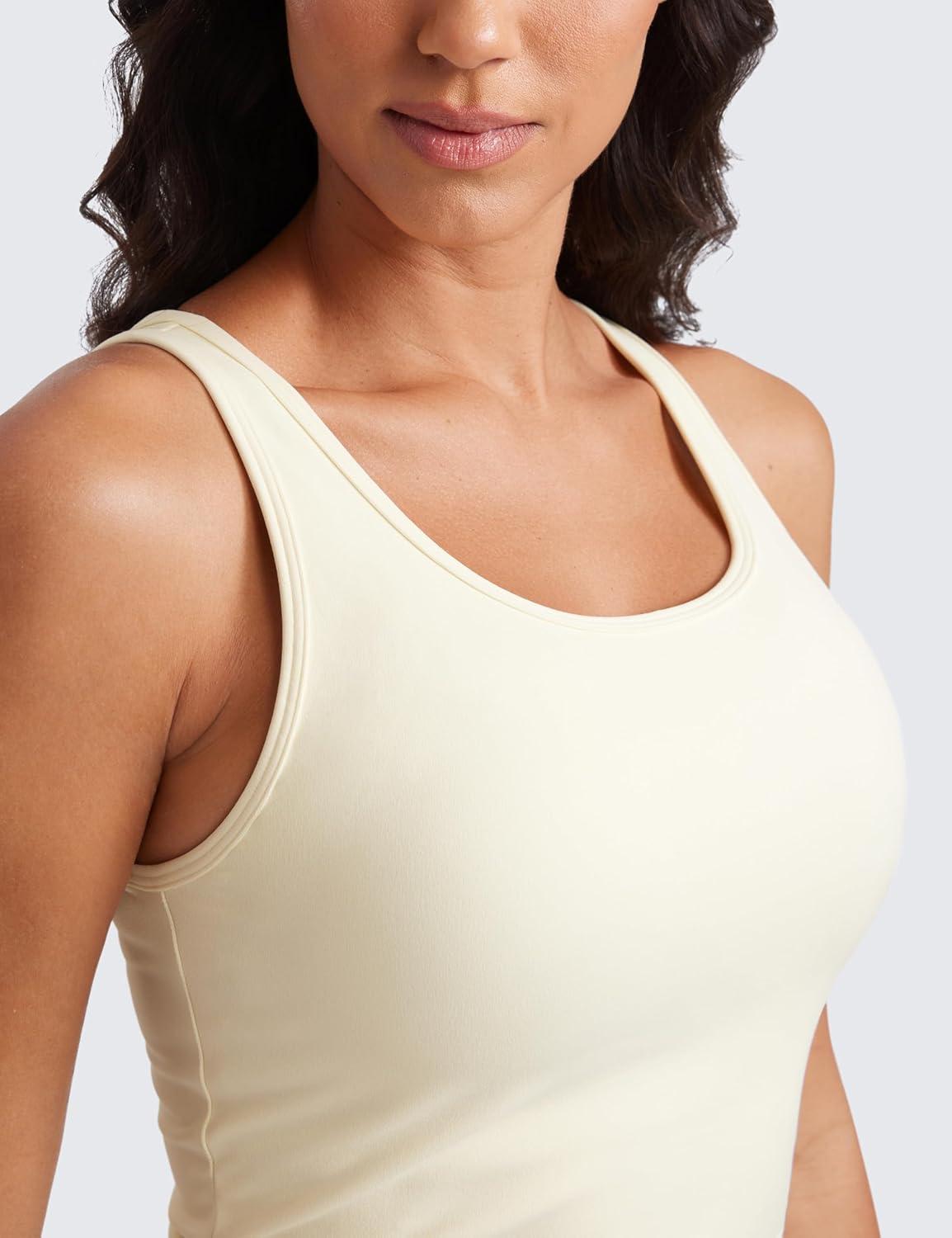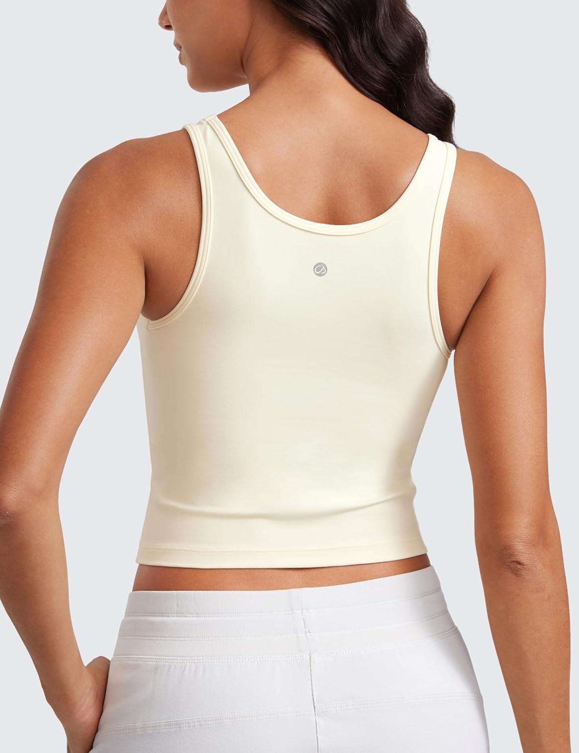 CRZ YOGA Butterluxe Double Lined Tank Tops for Women – Workout Casual Scoop Neck Racerback Crop Sleeveless Shirt(Gloam Yellow Light)