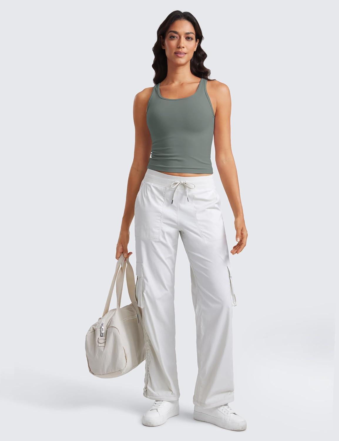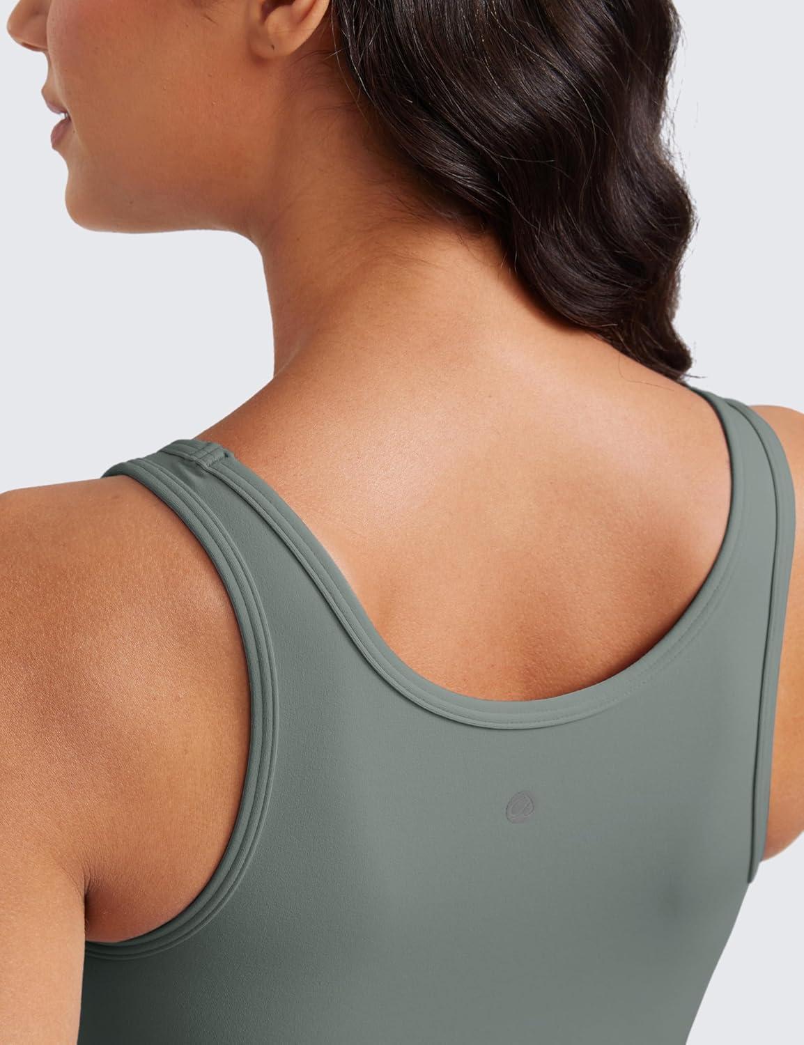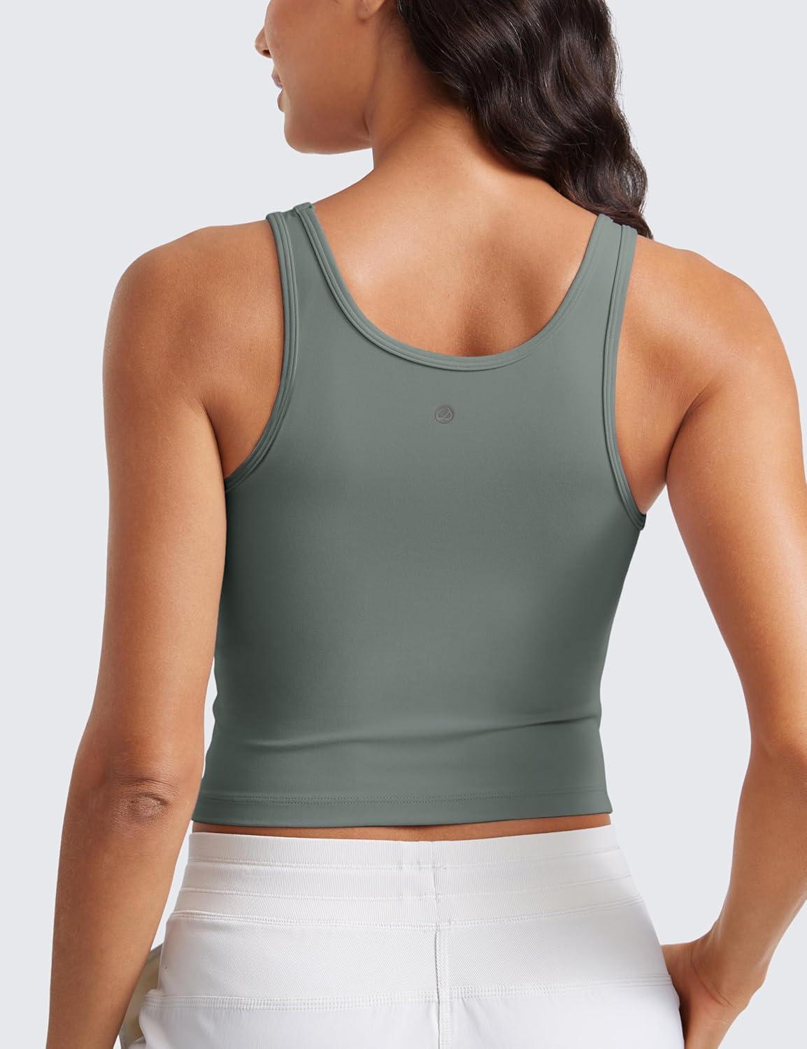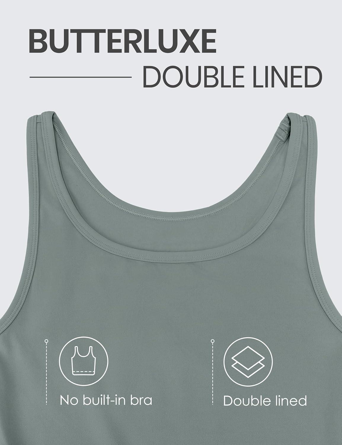CRZ YOGA Butterluxe Double Lined Tank Tops for Women – Workout Casual Scoop Neck Racerback Crop Sleeveless Shirt(Grey Sage)