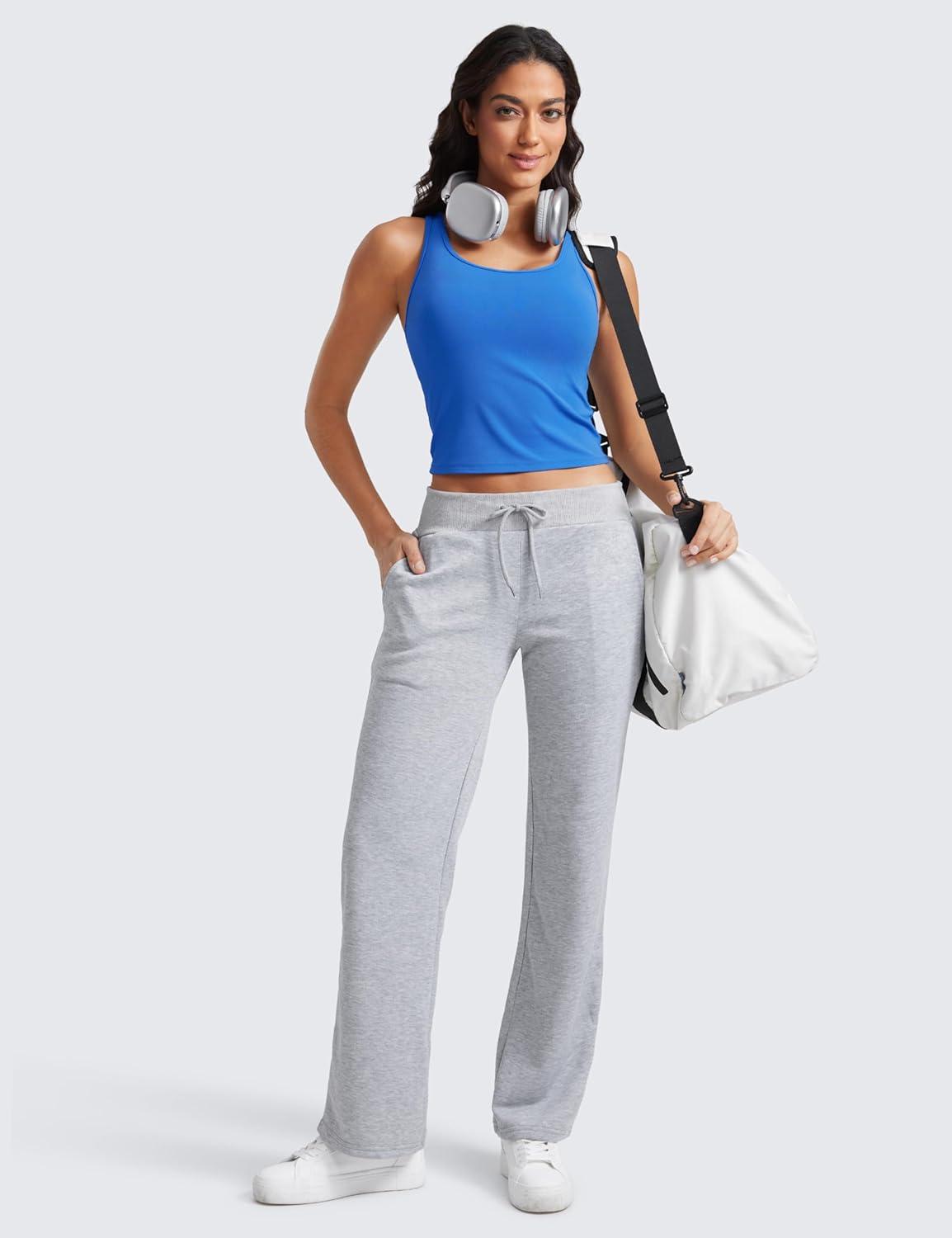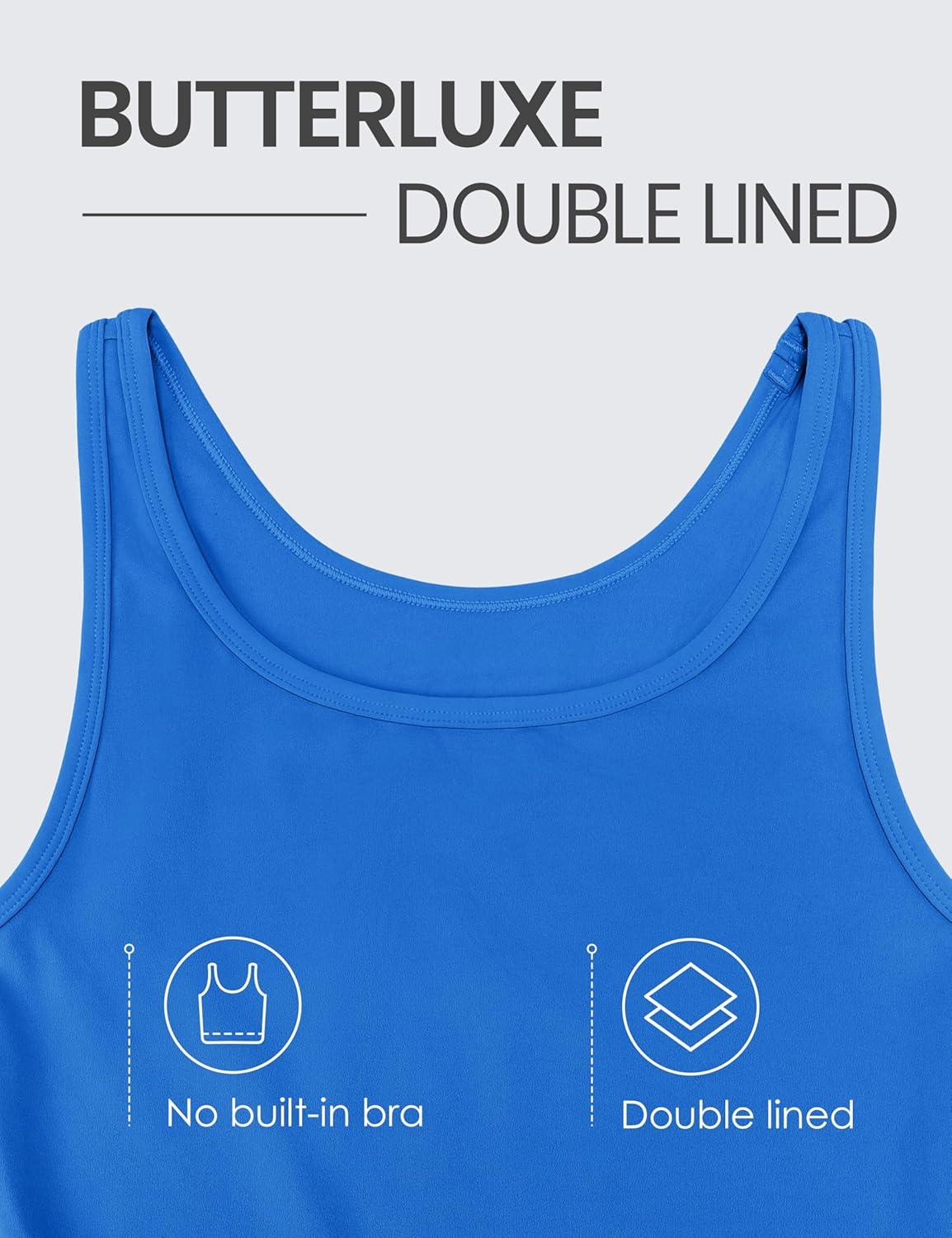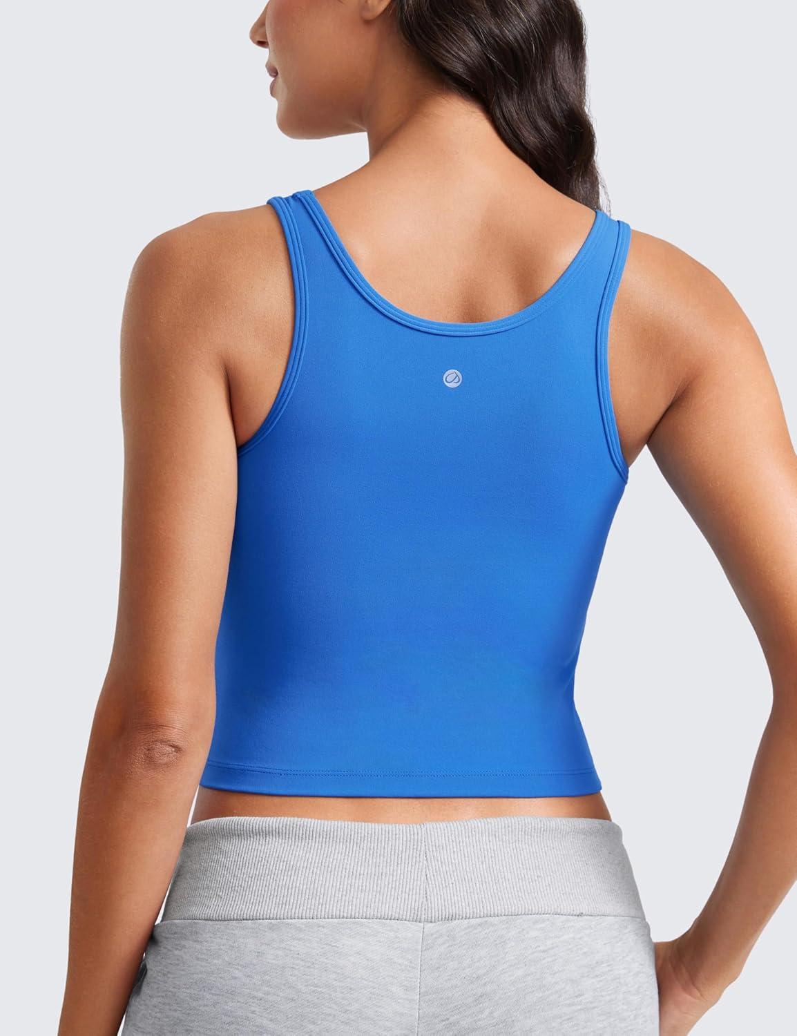 CRZ YOGA Butterluxe Double Lined Tank Tops for Women – Workout Casual Scoop Neck Racerback Crop Sleeveless Shirt(Sparkle Blue)