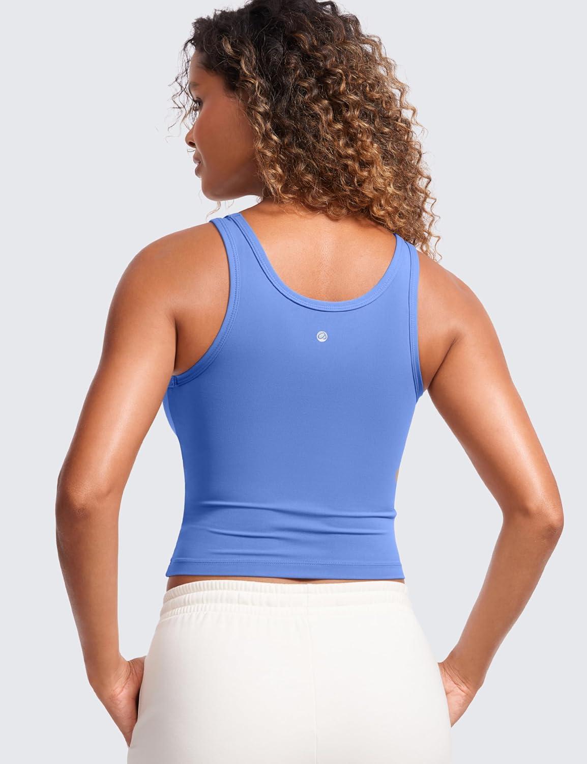 CRZ YOGA Butterluxe Double Lined Tank Tops for Women – Workout Casual Scoop Neck Racerback Crop Sleeveless Shirt(Wild Indigo)