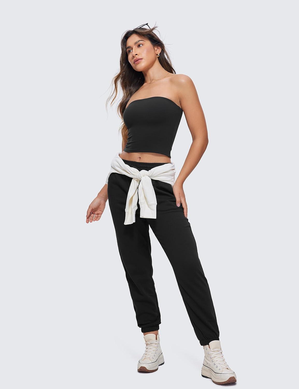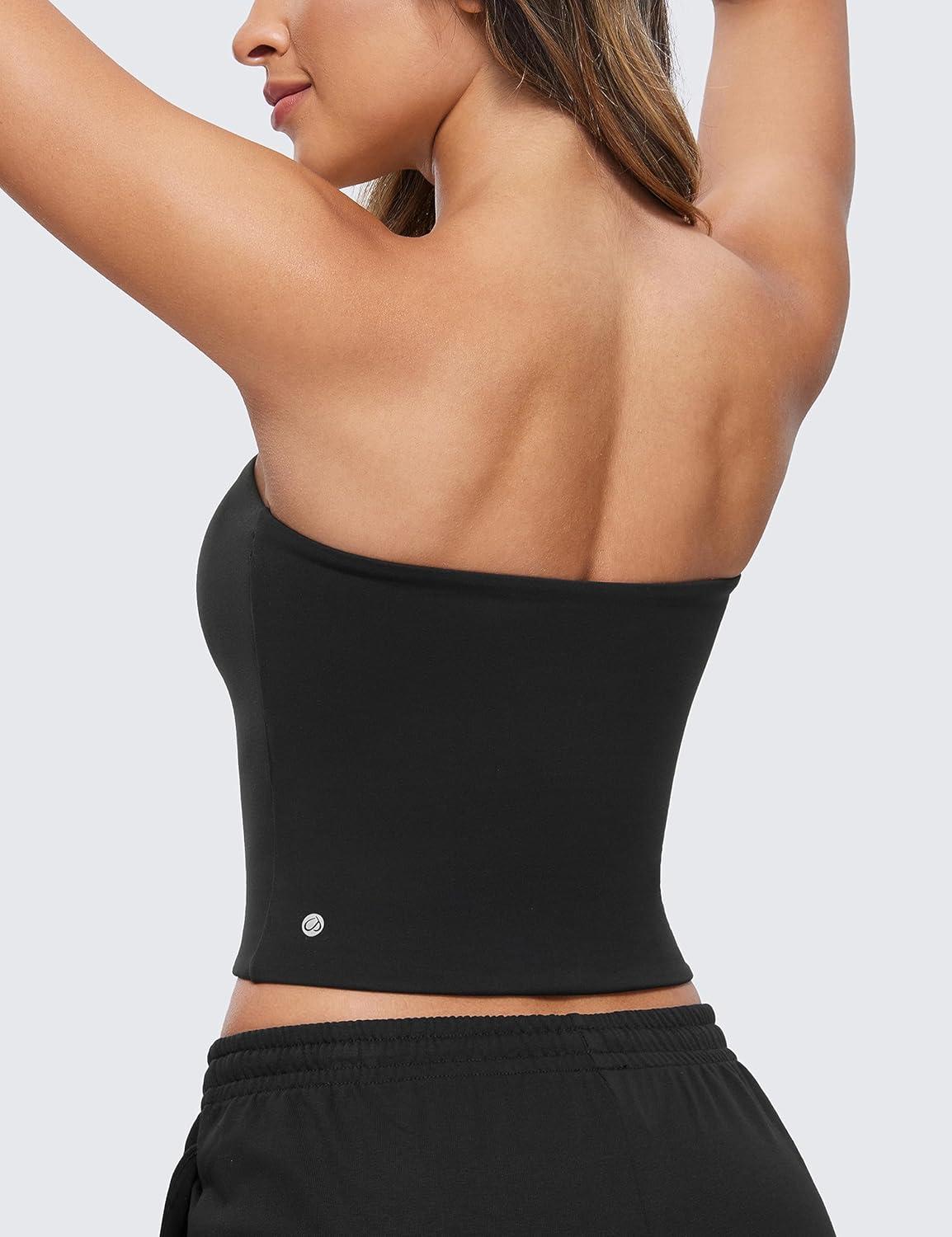 CRZ YOGA Butterluxe Double Lined Tube Tops for Women – Going Out Casual Tank Bandeau Crop Strapless Shirts(Black)
