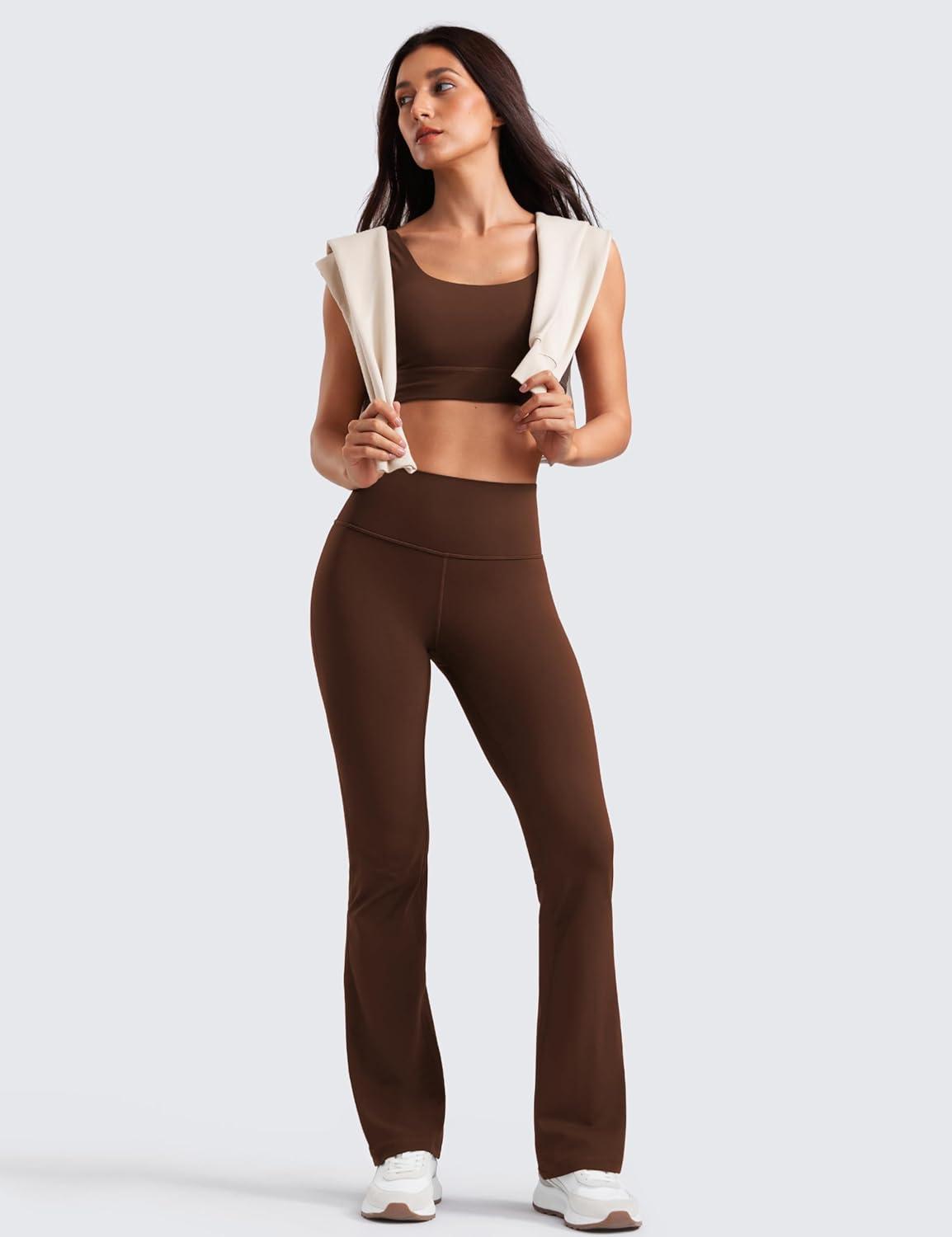CRZ YOGA Butterluxe Flare Leggings 29″/30.5″/32″/33.5″ – High Waist Bootcut Wide Leg Lounge Womens Yoga Pants with Pocket(Lava Brown)