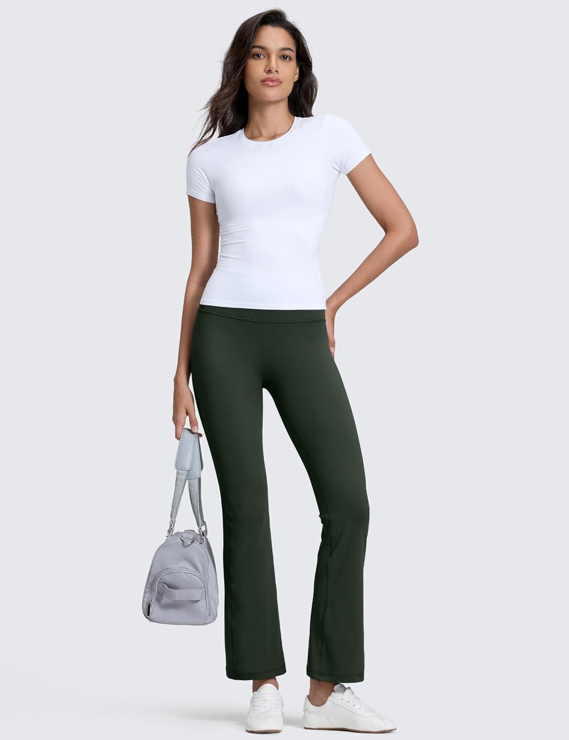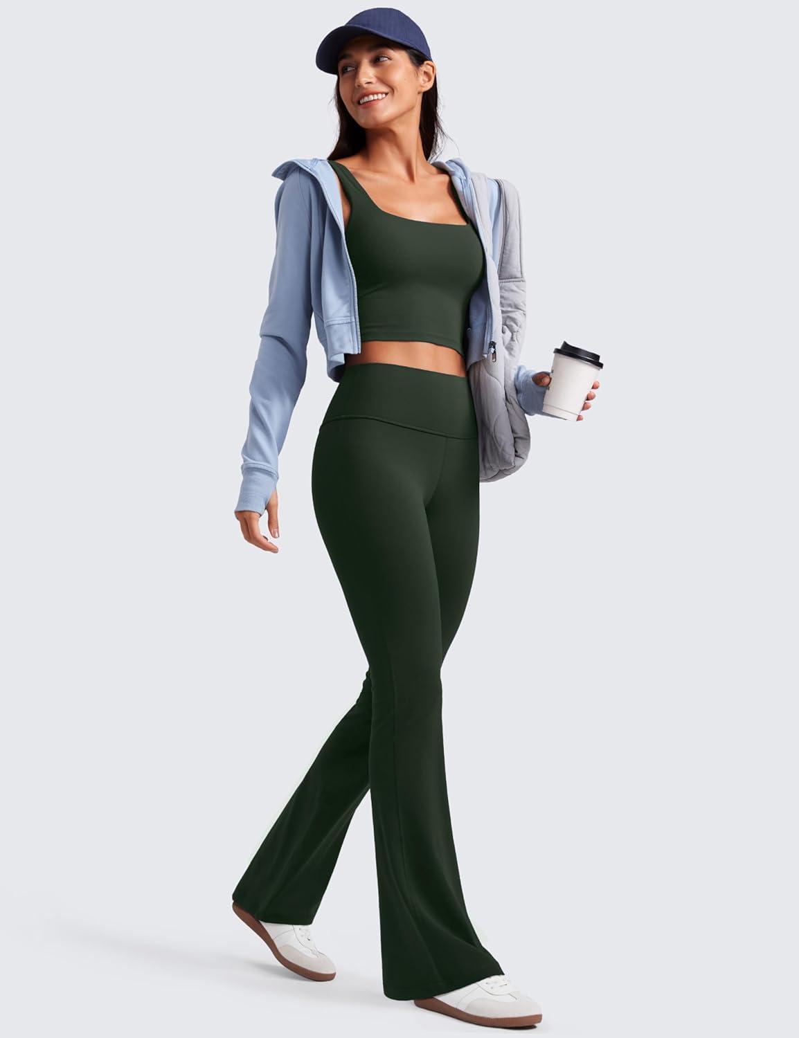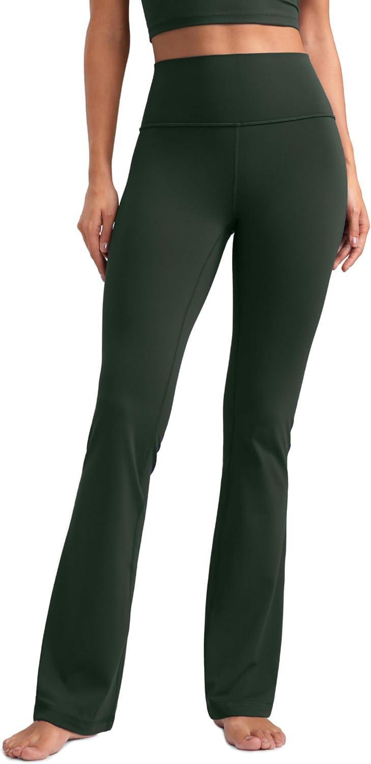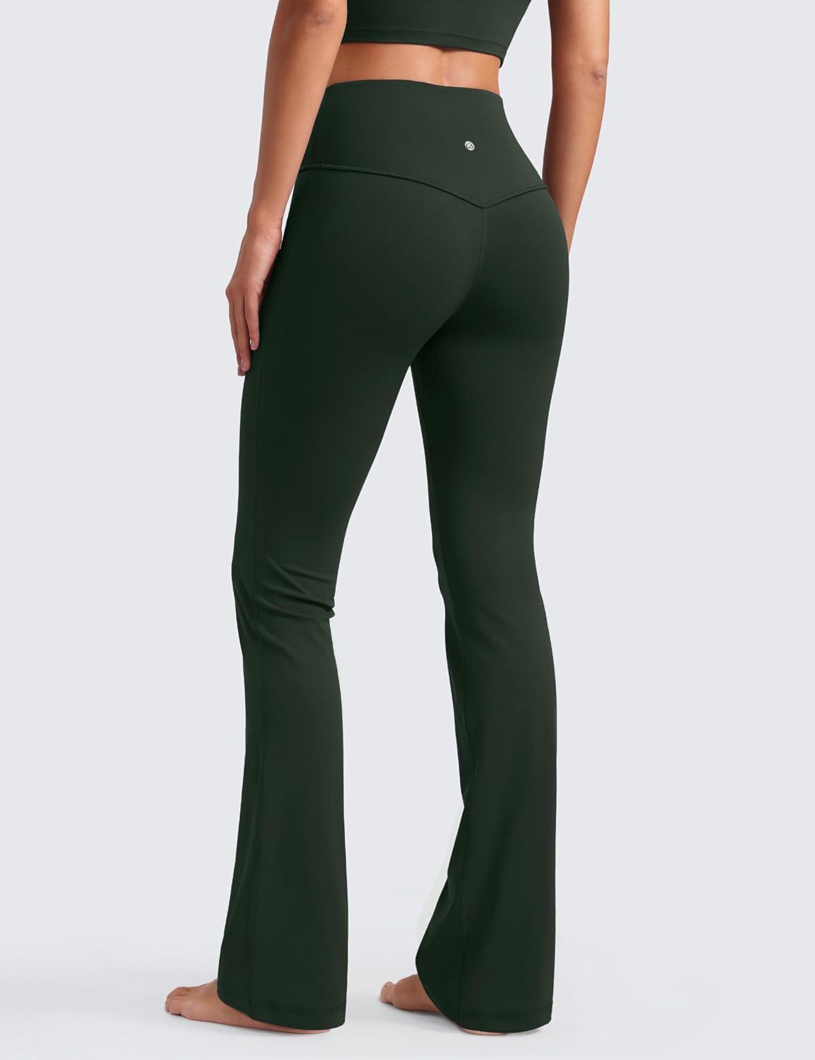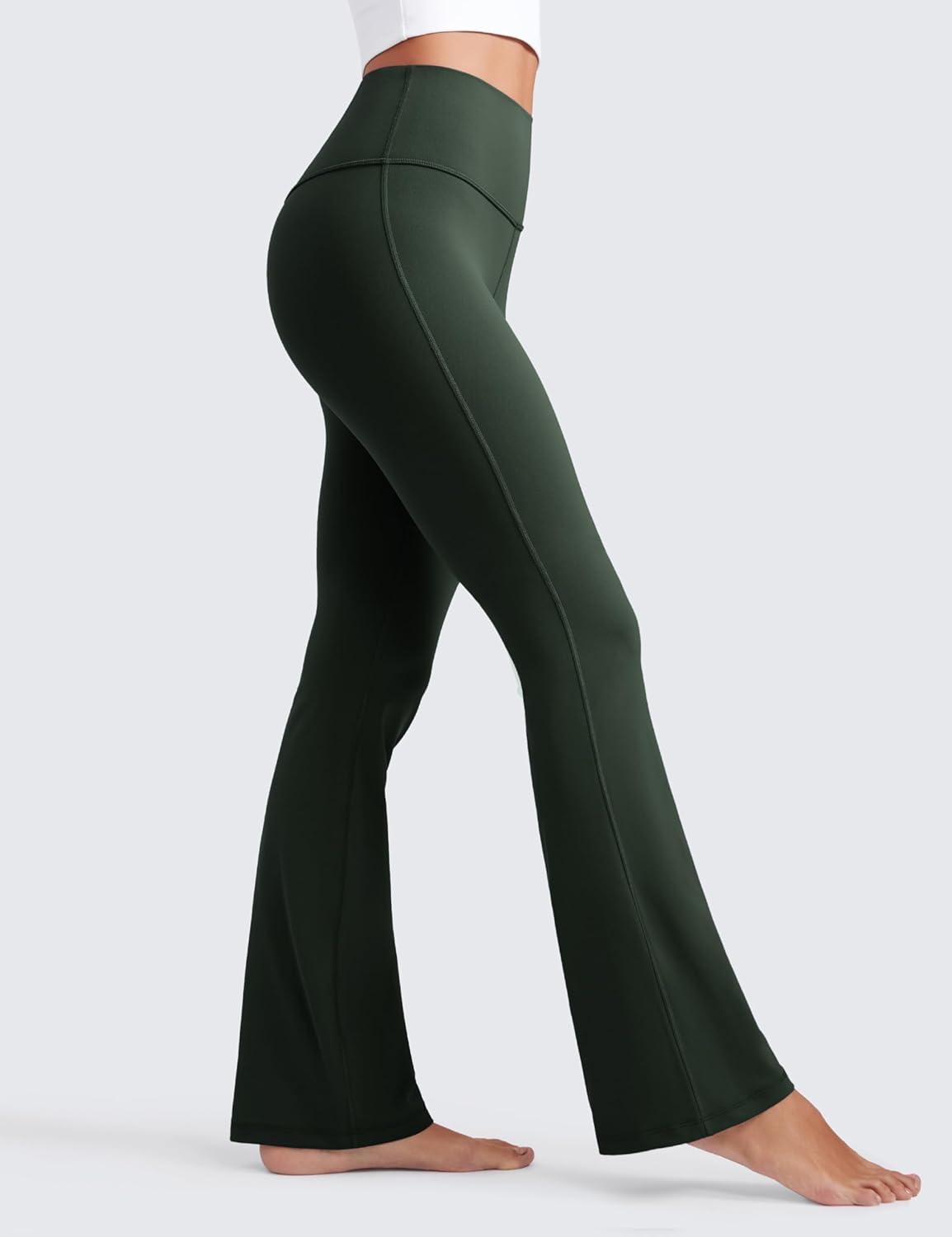 CRZ YOGA Butterluxe Flare Leggings 29″/30.5″/32″/33.5″ – High Waist Bootcut Wide Leg Lounge Womens Yoga Pants with Pocket(Legend Green)