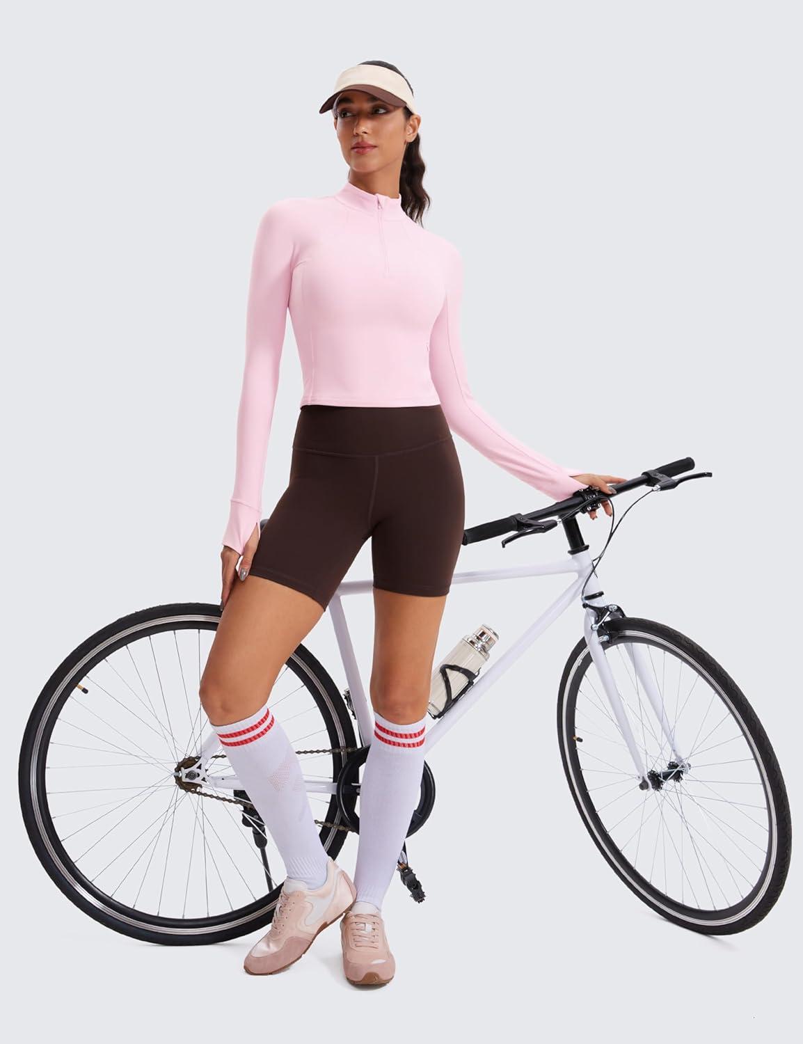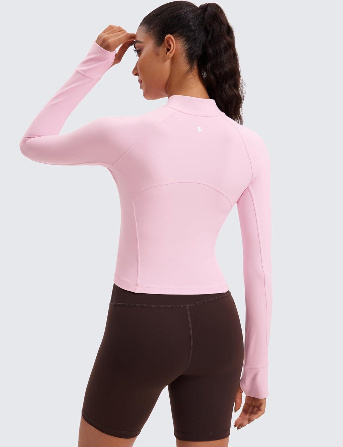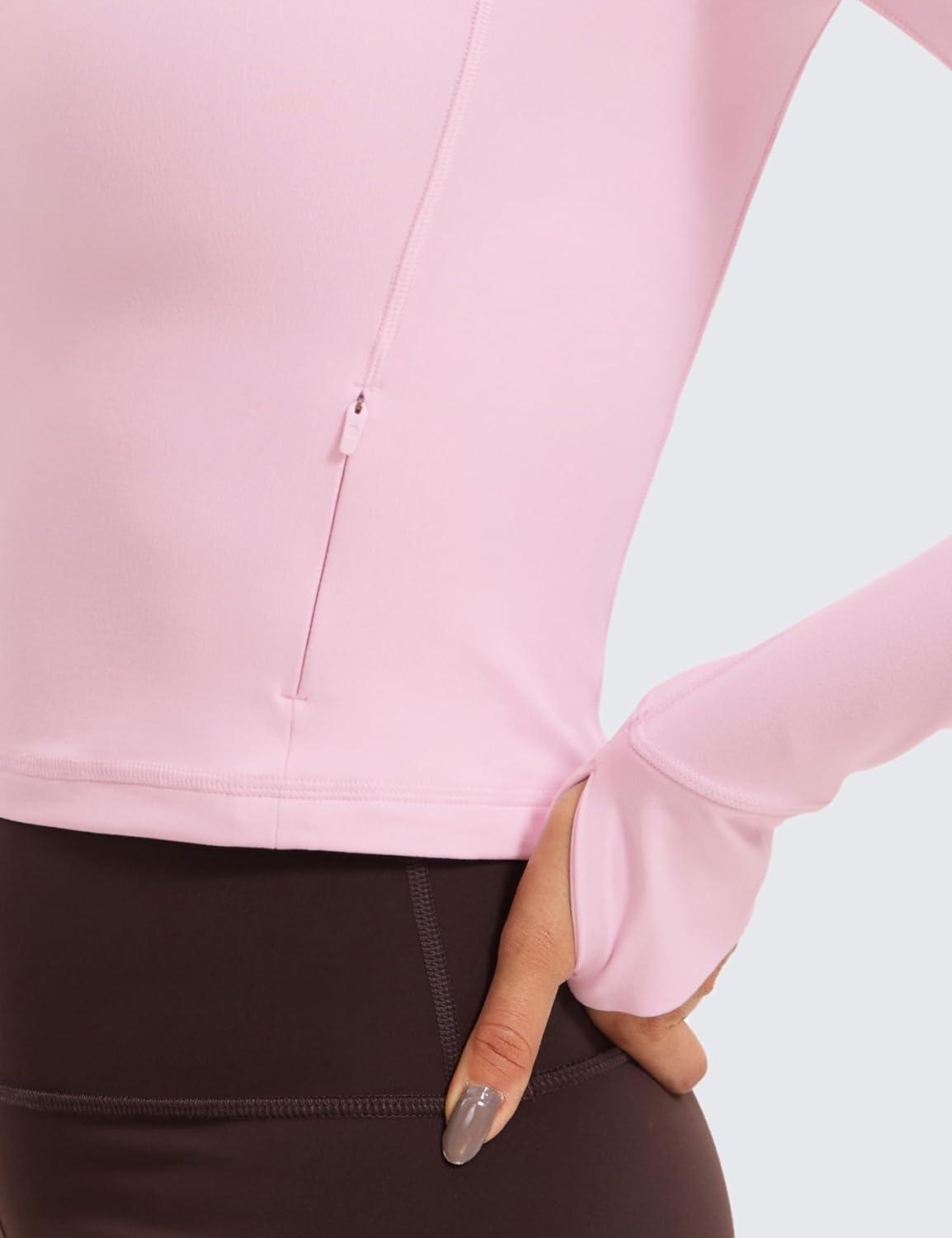 CRZ YOGA Butterluxe Half Zip Long Sleeve Shirts for Women – Workout Athletic Yoga Tops Crop Collared Quarter Zipper T-Shirt(Pink Peony)