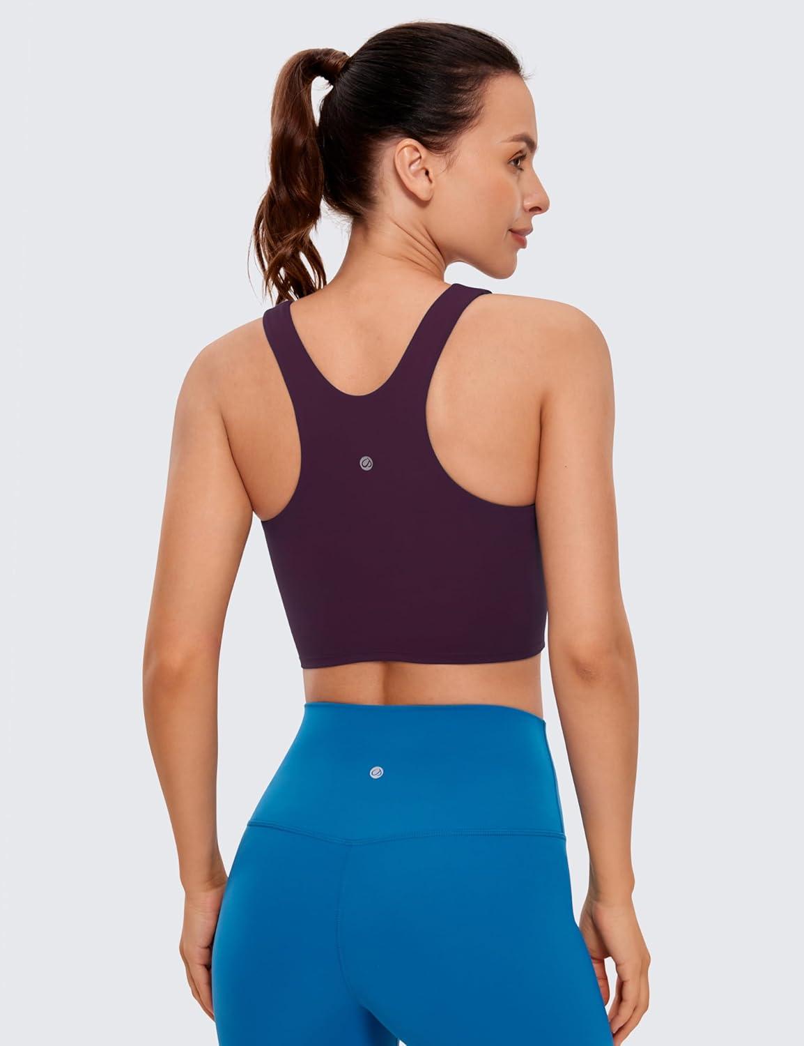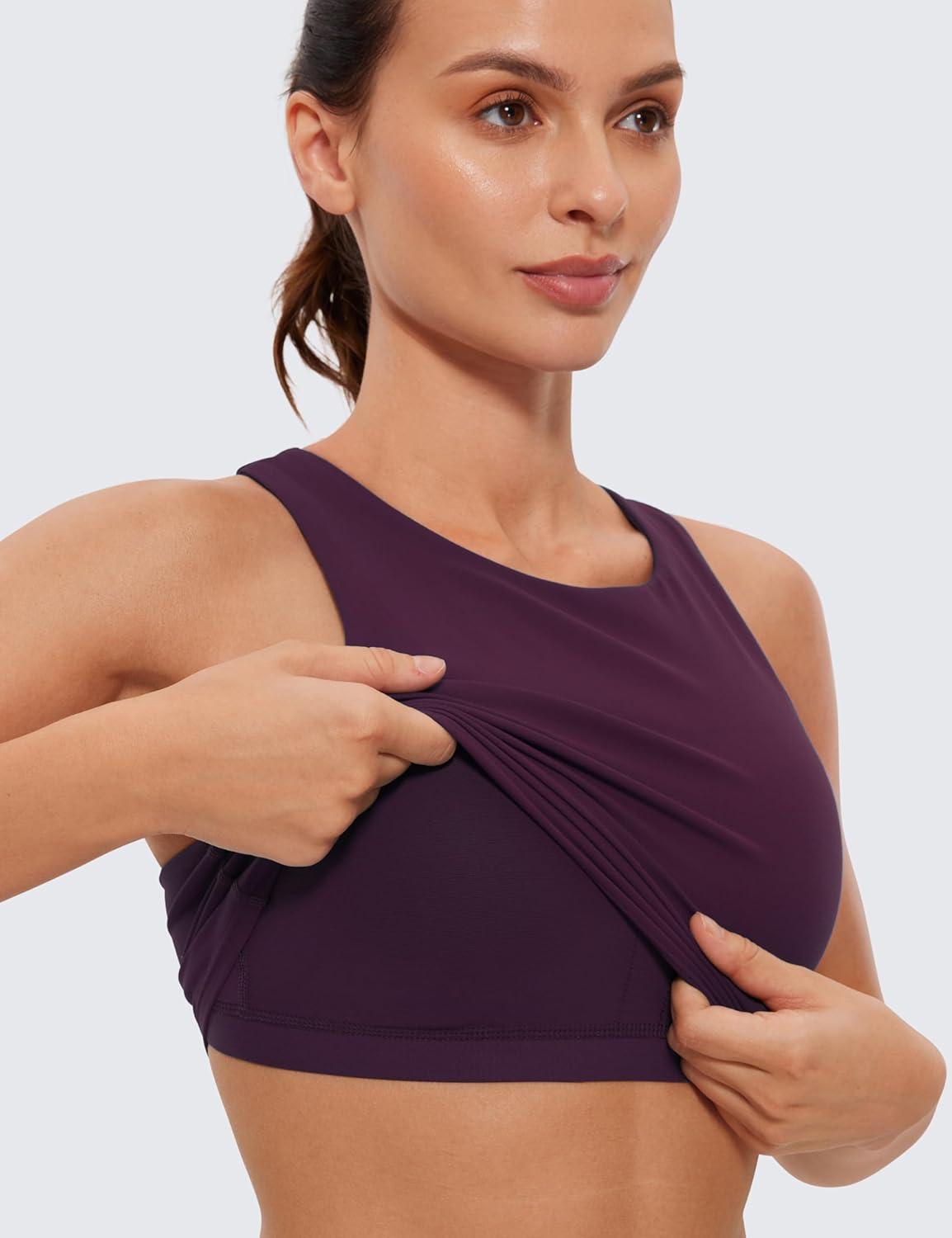 CRZ YOGA Butterluxe High Neck Crop Tank Tops for Women – Racerback Padded Longline Sports Bras Workout(Deep Purple)