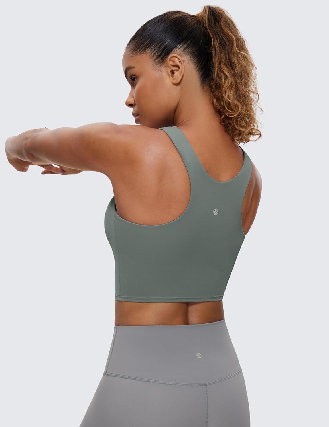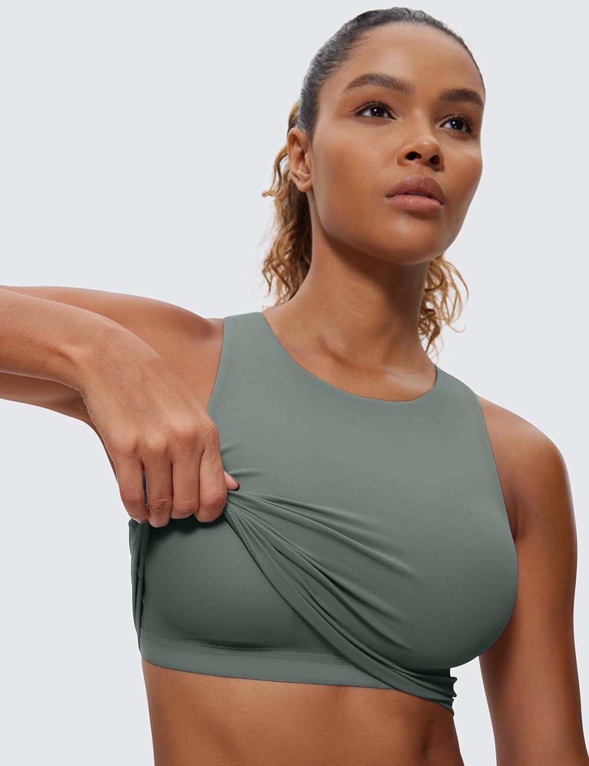 CRZ YOGA Butterluxe High Neck Crop Tank Tops for Women – Racerback Padded Longline Sports Bras Workout(Grey Sage)