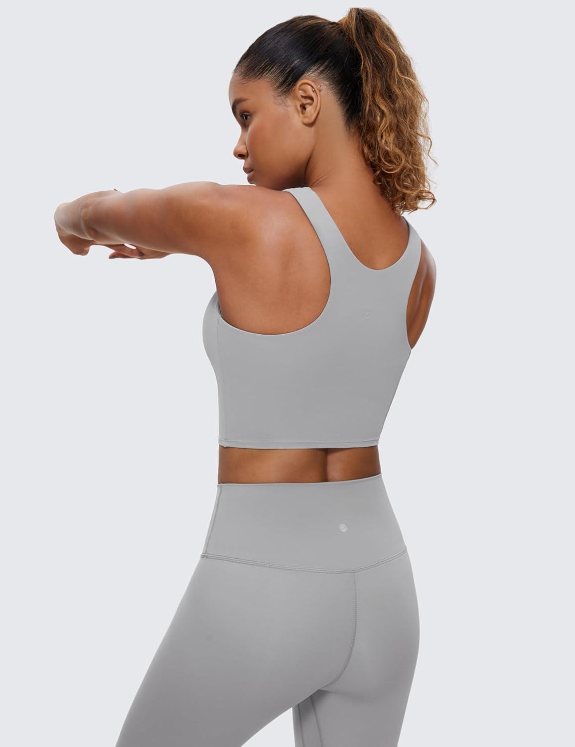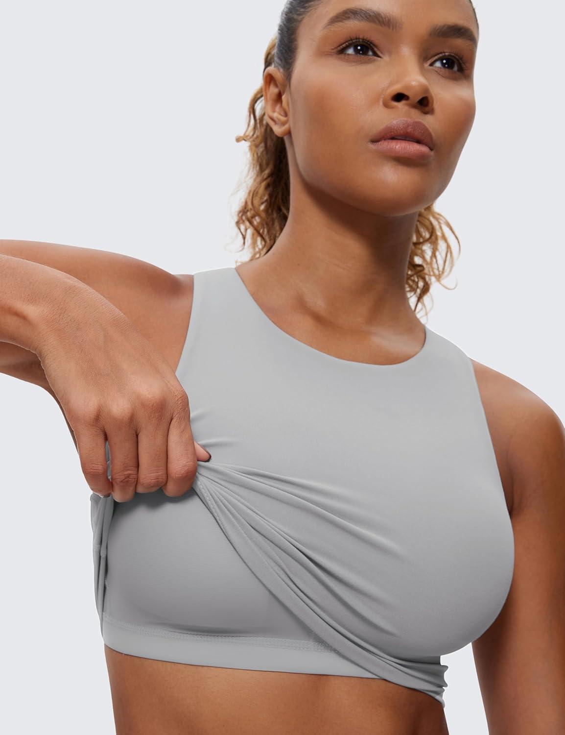 CRZ YOGA Butterluxe High Neck Crop Tank Tops for Women – Racerback Padded Longline Sports Bras Workout(Rhino Grey)