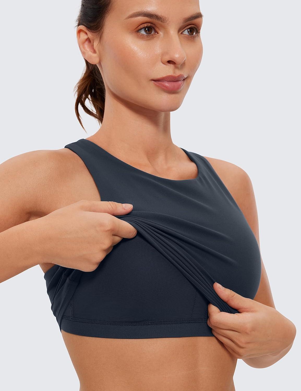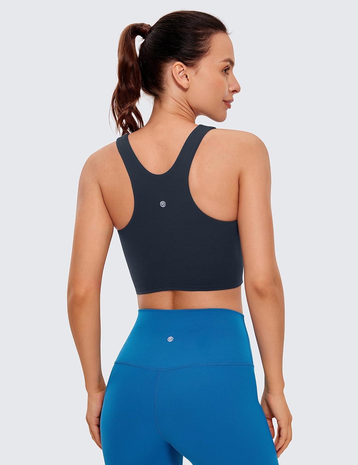 CRZ YOGA Butterluxe High Neck Crop Tank Tops for Women – Racerback Padded Longline Sports Bras Workout(True Navy)