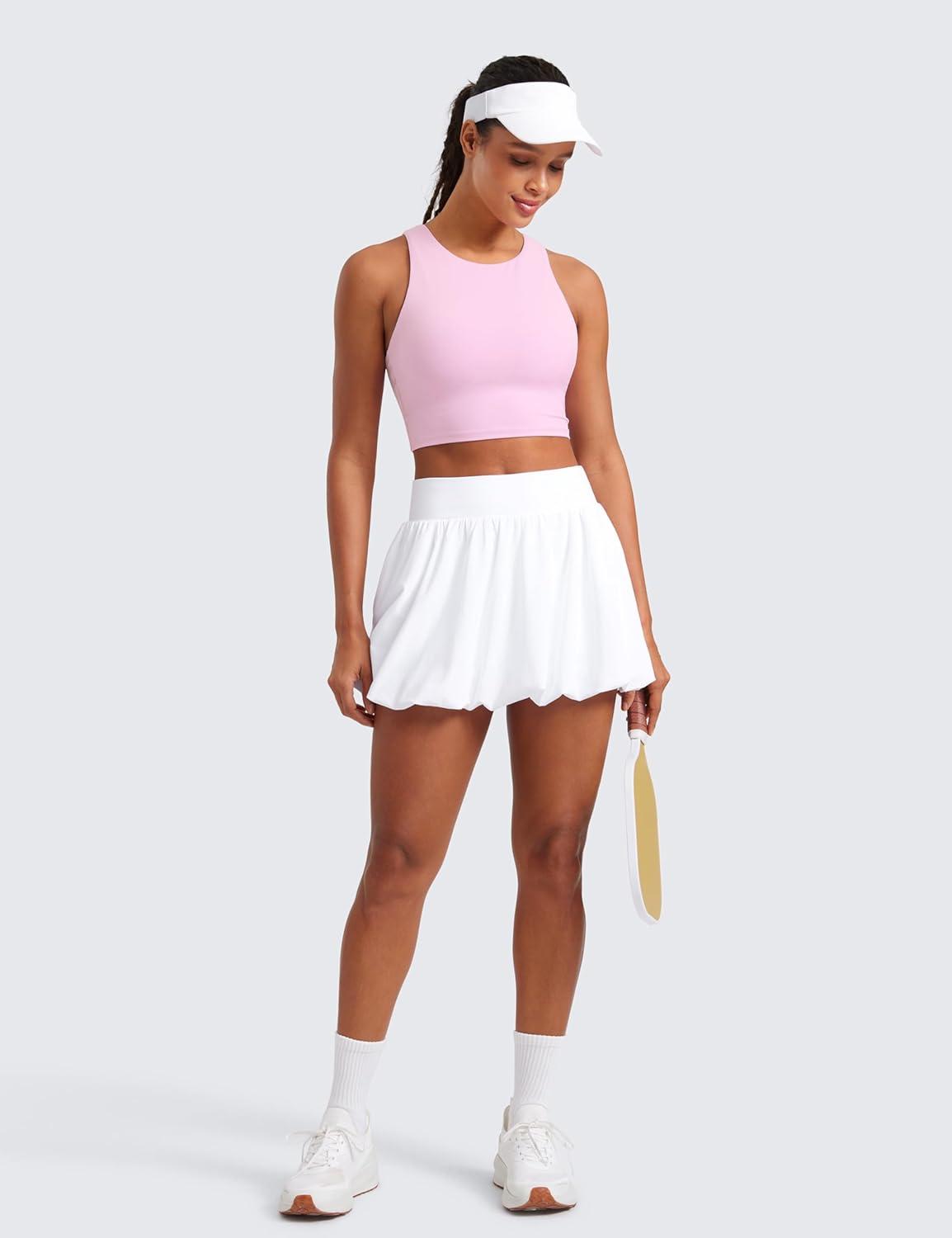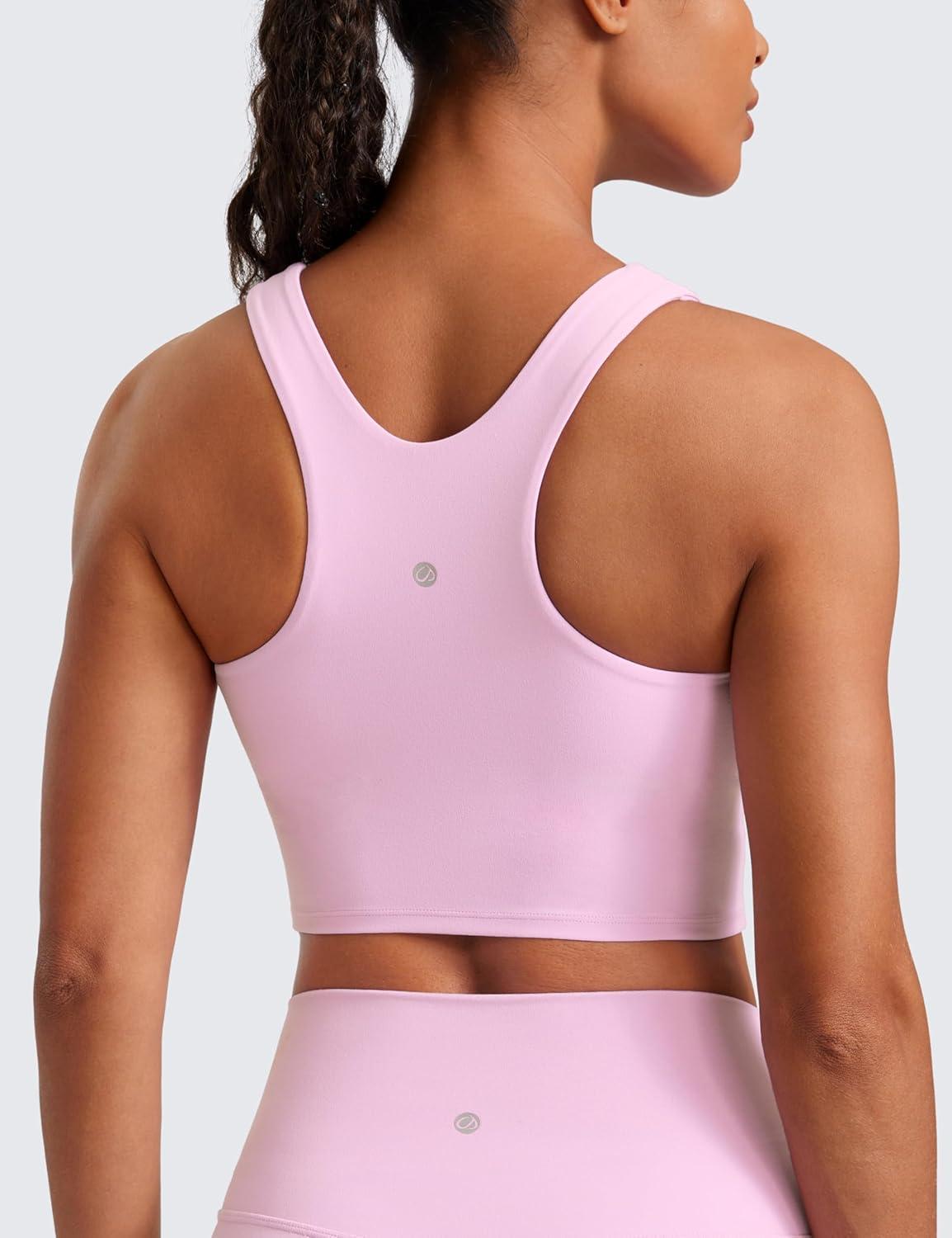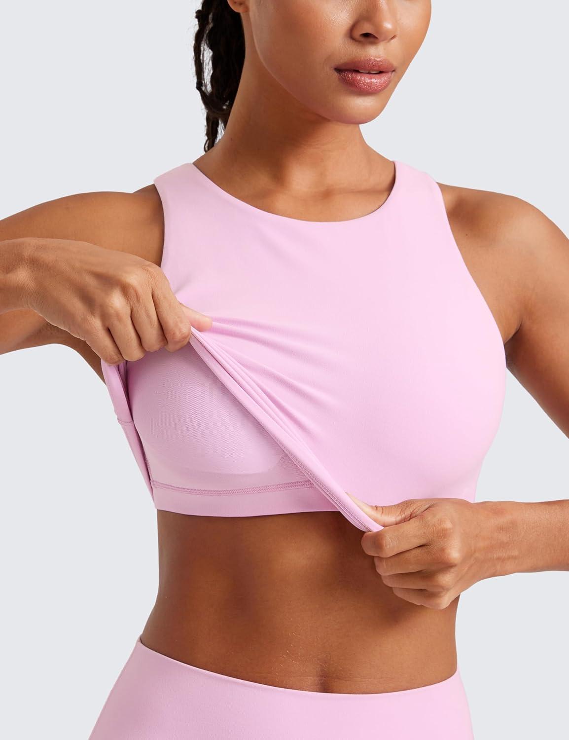 CRZ YOGA Butterluxe High Neck Crop Tank Tops for Women – Racerback Padded Longline Sports Bras Workout(Vita Pink)