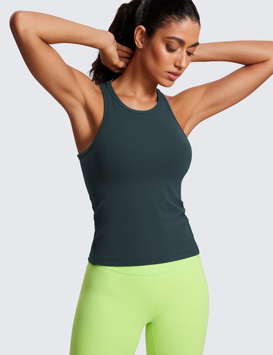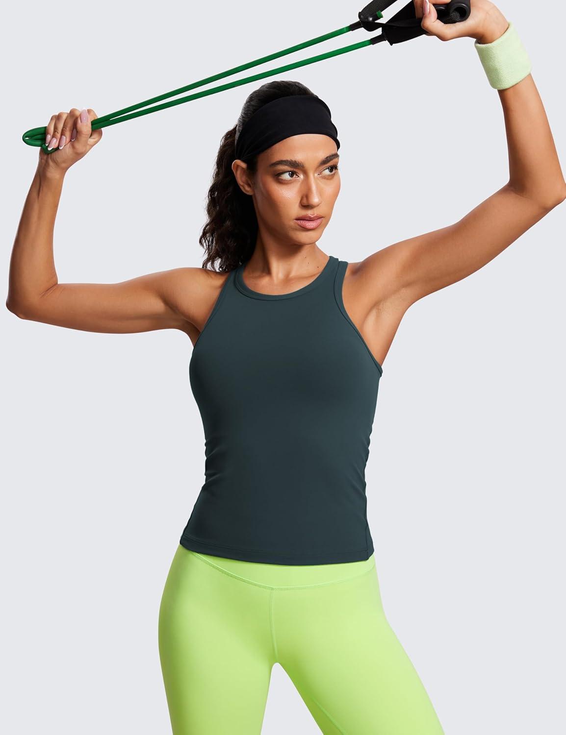 CRZ YOGA Butterluxe High Neck Tank Tops for Women – Yoga Workout Athletic Gym Camisole Racerback Sleeveless Shirts(Forest Dark Green)