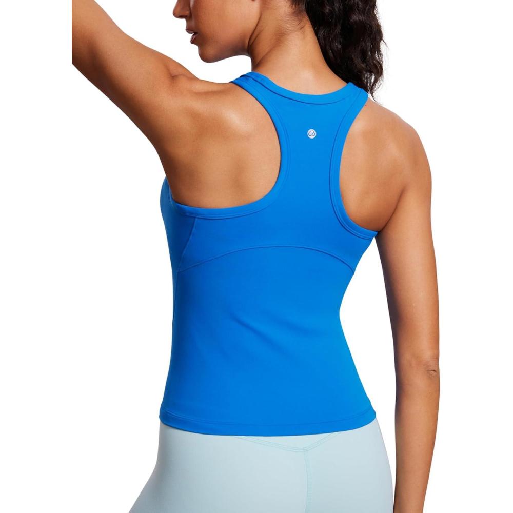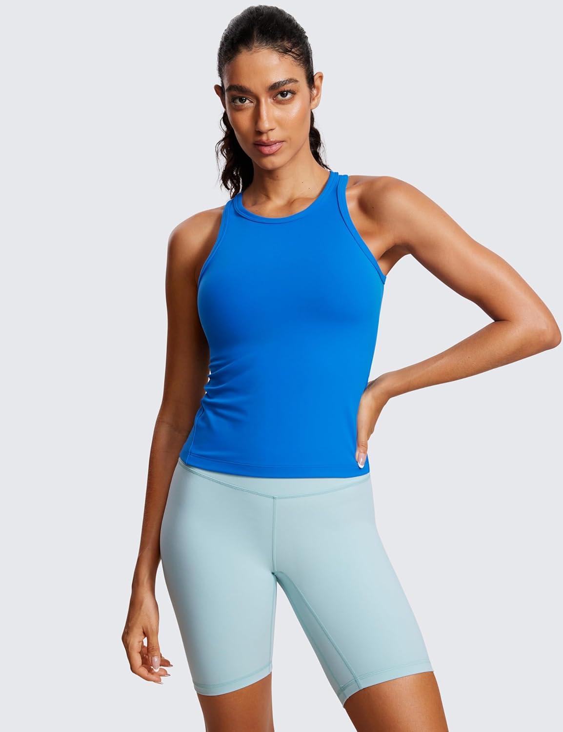 CRZ YOGA Butterluxe High Neck Tank Tops for Women – Yoga Workout Athletic Gym Camisole Racerback Sleeveless Shirts(Sparkle Blue)