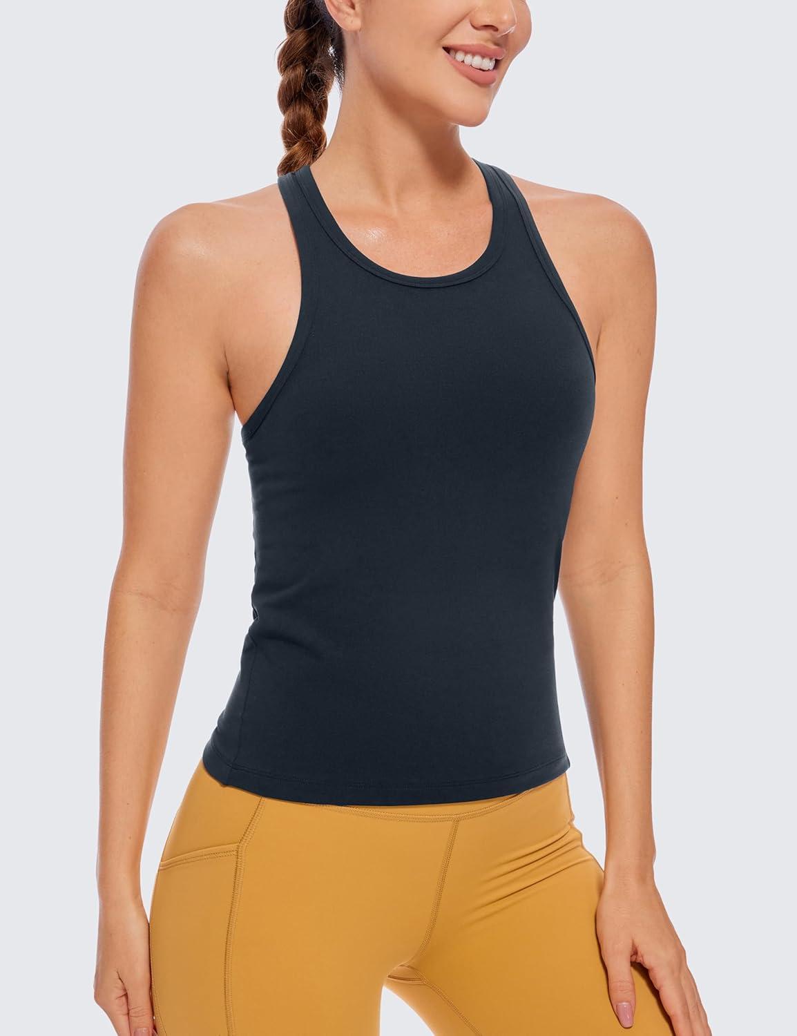 CRZ YOGA Butterluxe High Neck Tank Tops for Women – Yoga Workout Athletic Gym Camisole Racerback Sleeveless Shirts(True Navy)