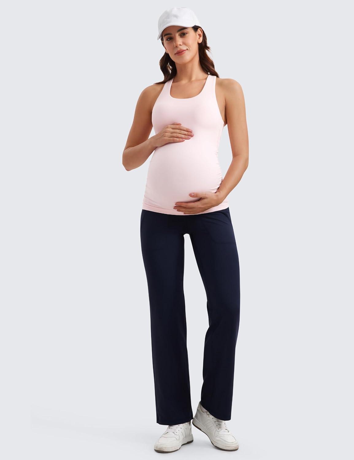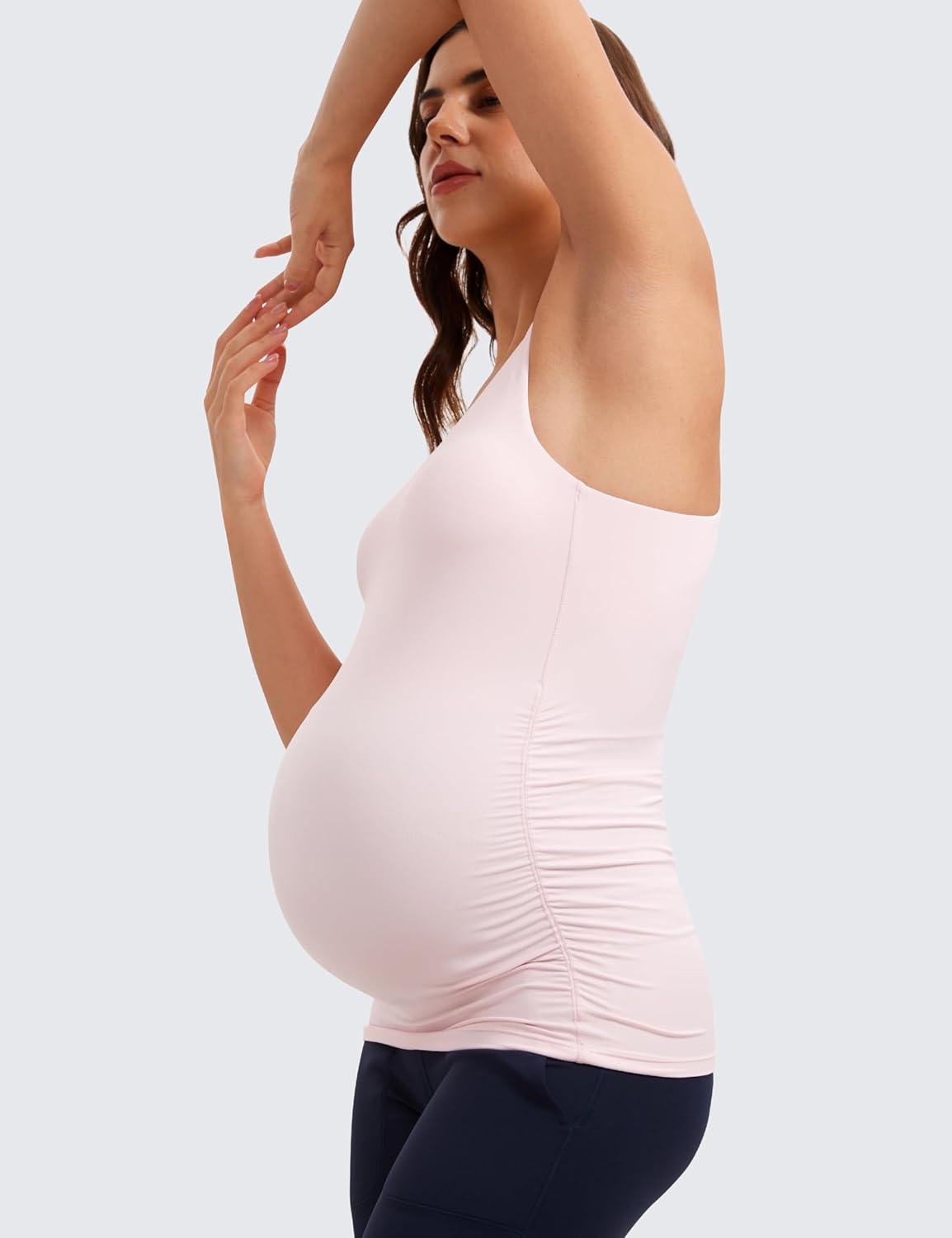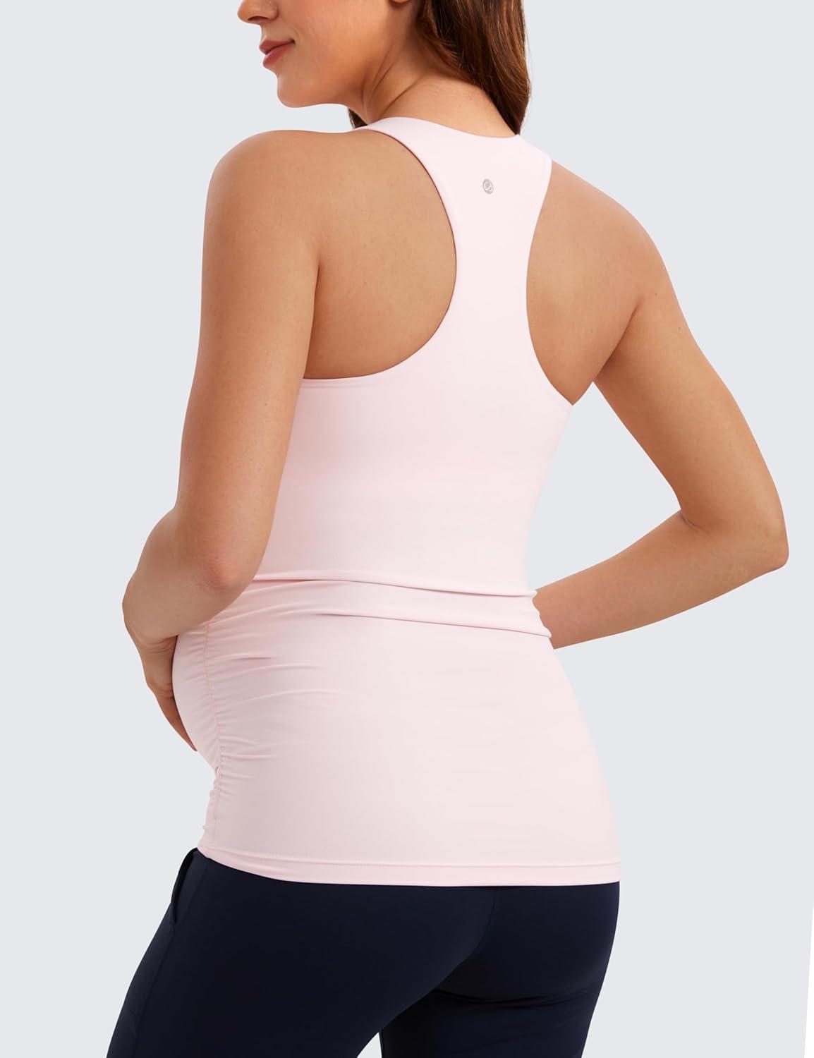 CRZ YOGA Butterluxe Maternity Racerback Tank Tops – Ruched Sleeveless Womens Pregnancy Yoga Workout Shirt with Built in Bra(Strawberry Pink)