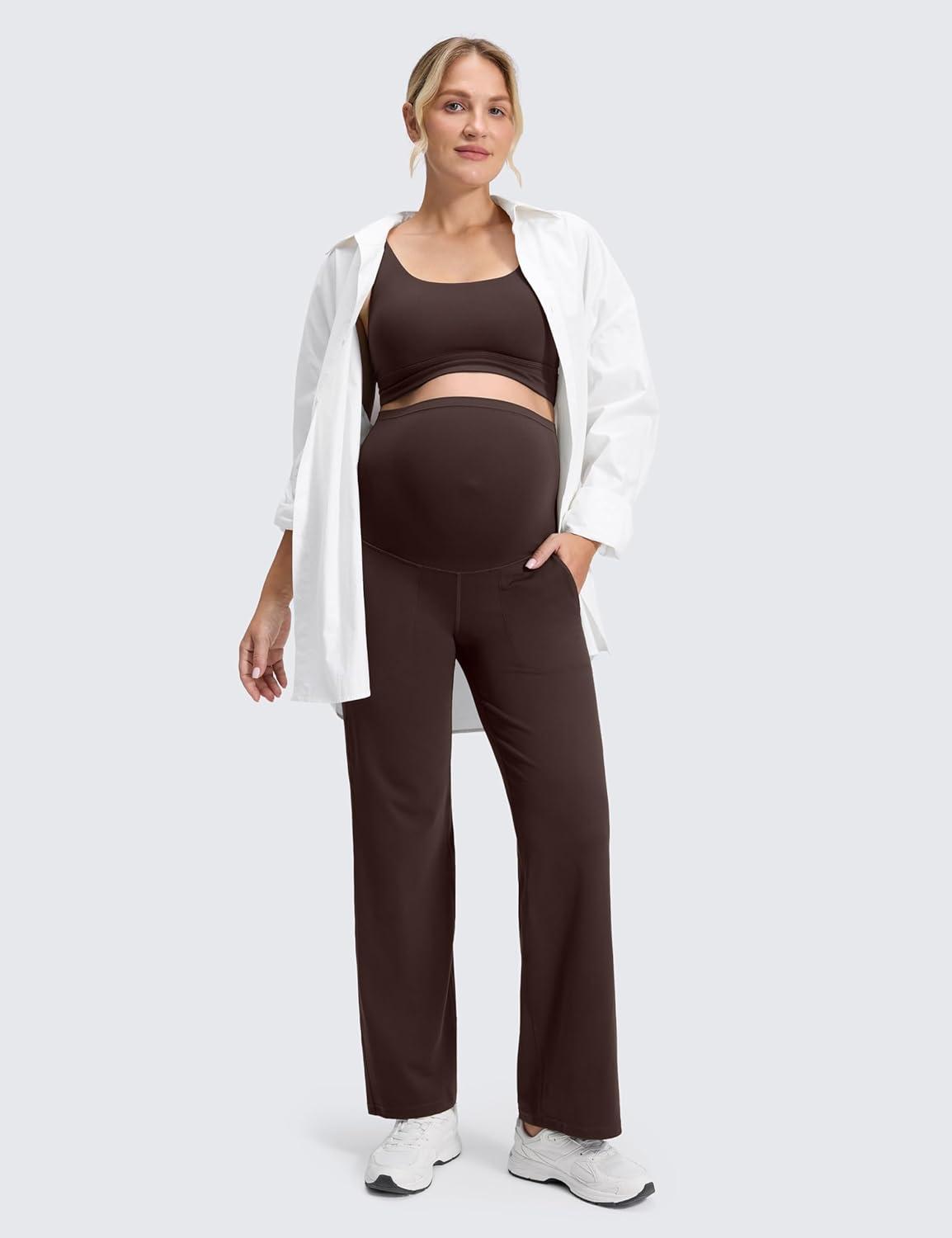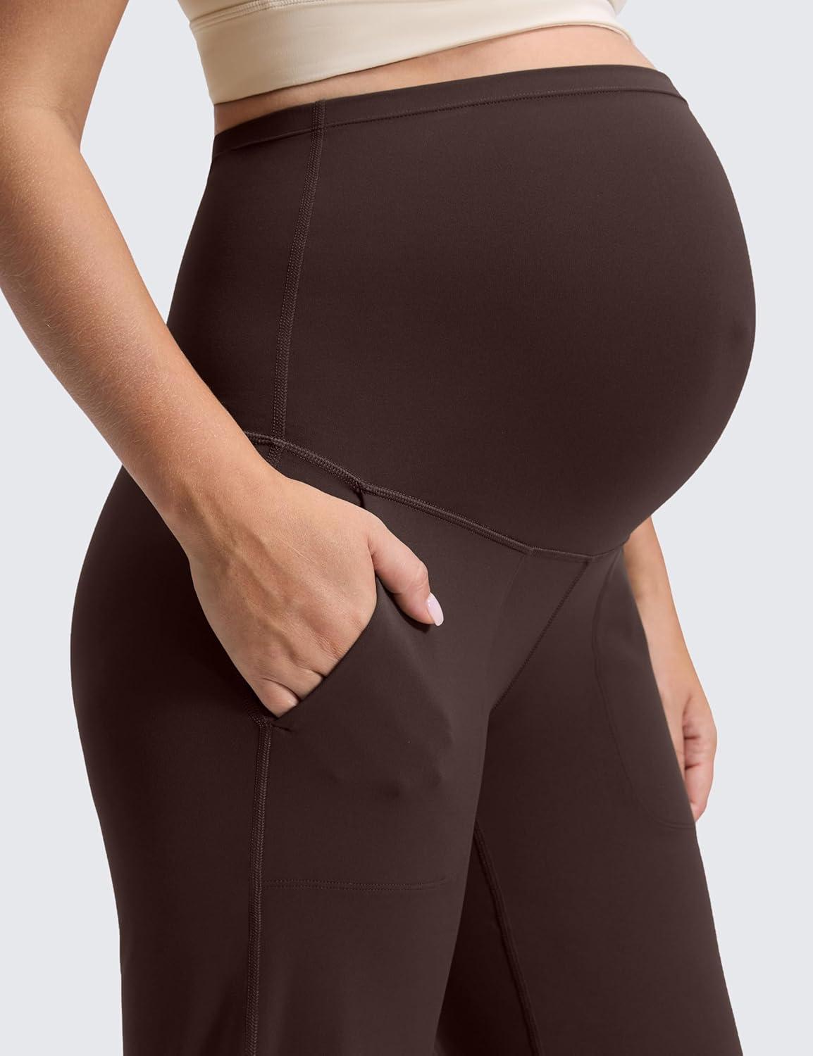 CRZ YOGA Butterluxe Maternity Wide Leg Pants Pockets 31.5″ – Over The Belly Workout Yoga Lounge Womens Pregnancy(Hot Fudge Brown)