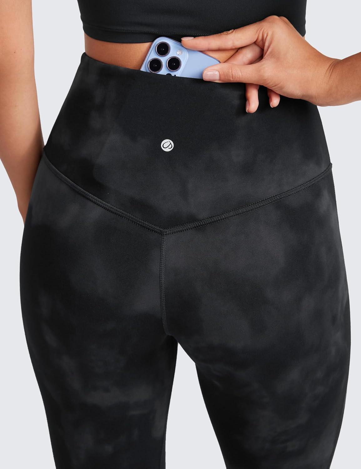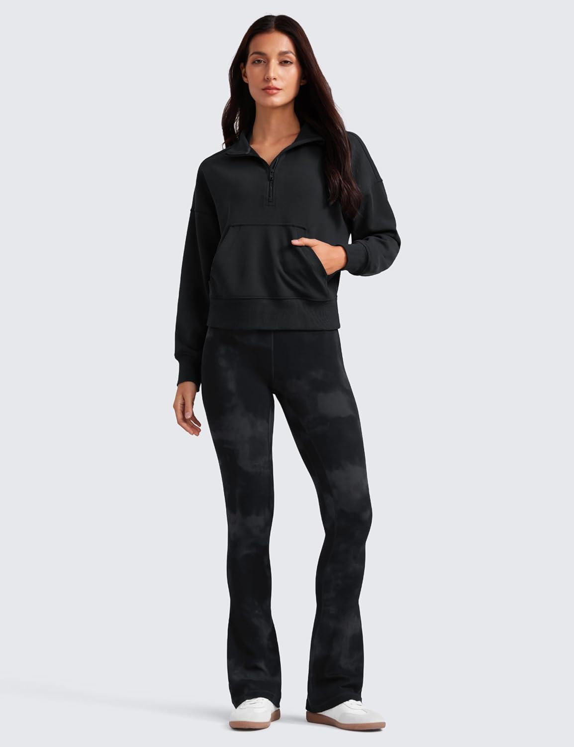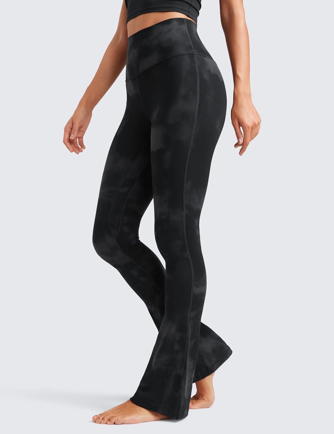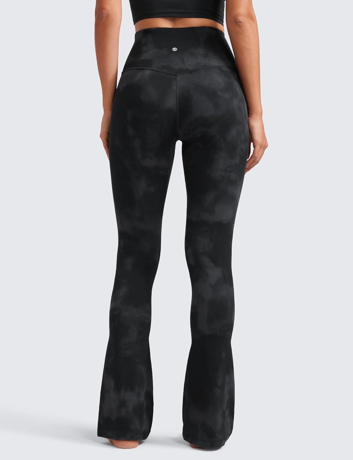 CRZ YOGA Butterluxe Mini Flared Leggings 30″/31.5″/33” – High Waist Bootcut Casual Lounge Women Yoga Pants with Pocket(Black Tie Dye Flowers)