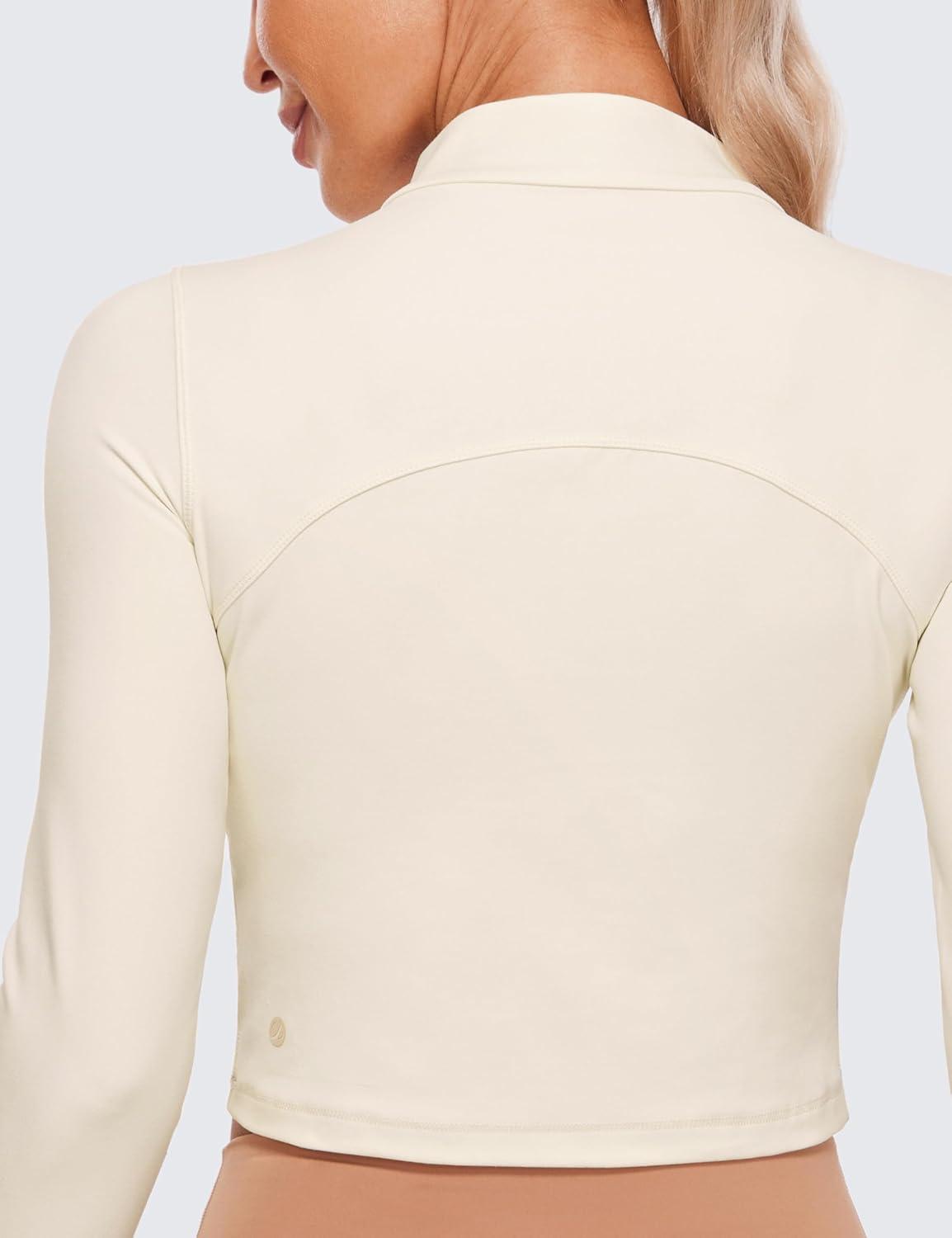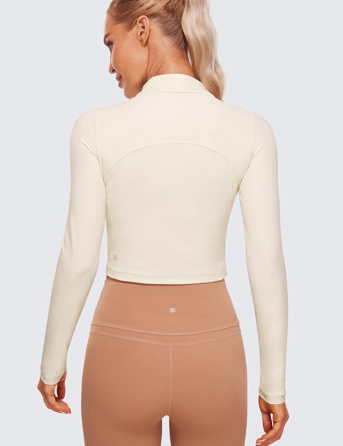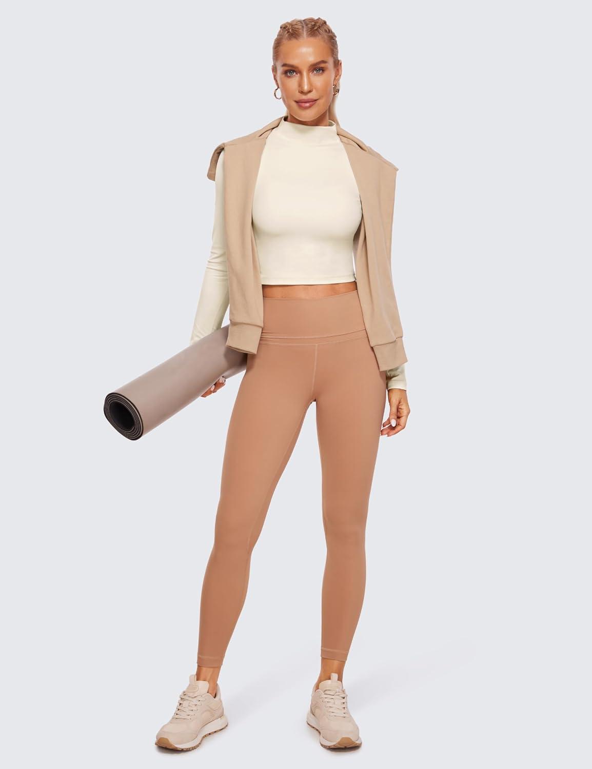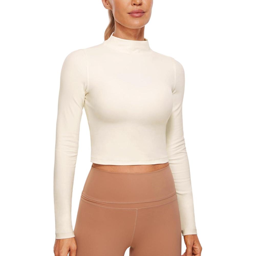 CRZ YOGA Butterluxe Mock Neck Long Sleeve Shirts for Women – Workout Casual Tops Turtleneck Crop Slim Fall Base Layer(White Apricot)
