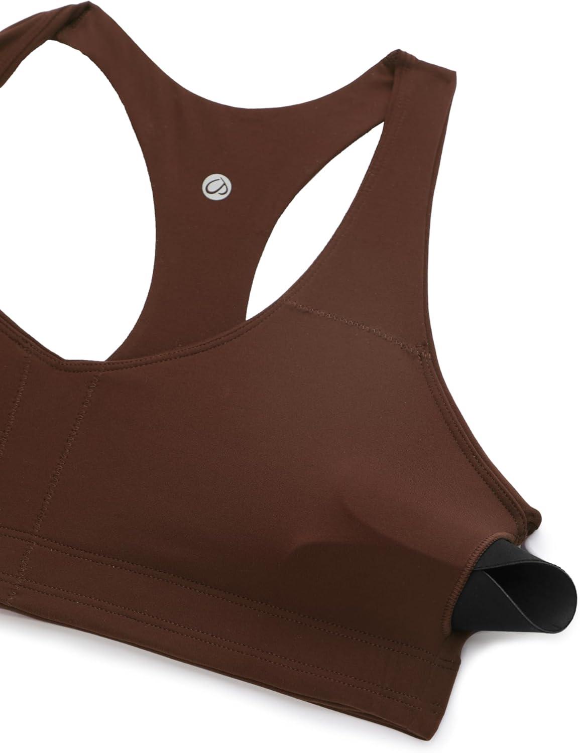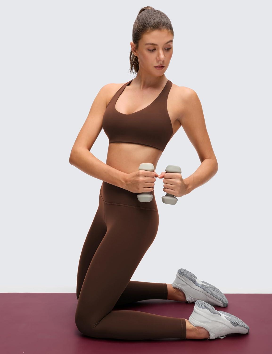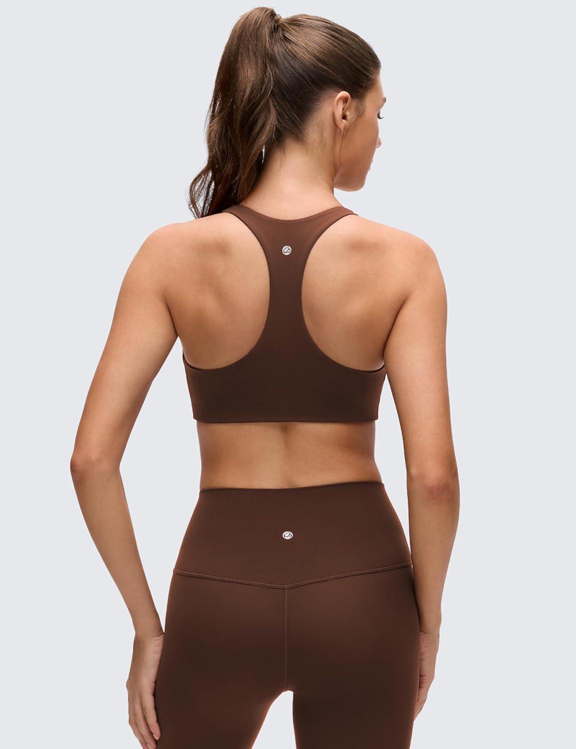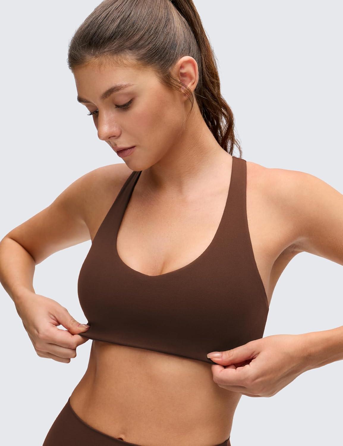 CRZ YOGA Butterluxe Racerback Sports Bras for Women – V Neck Supportive Padded Wireless Athletic Yoga Crop Top(Lava Brown)