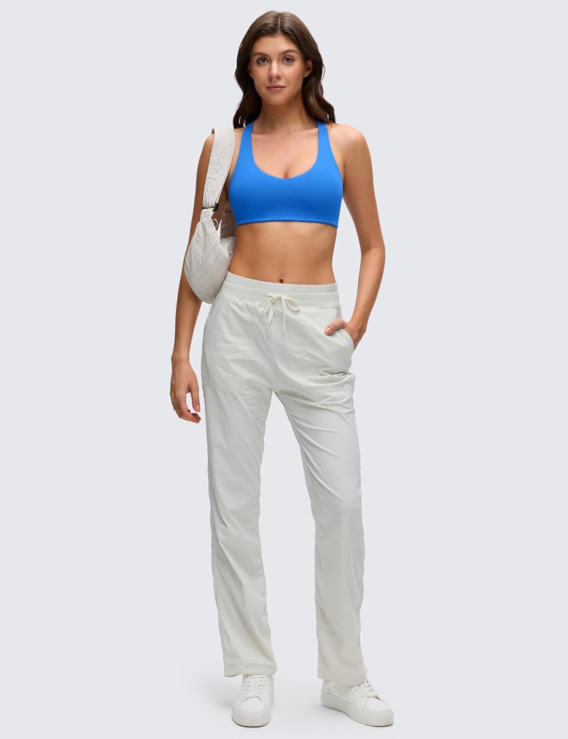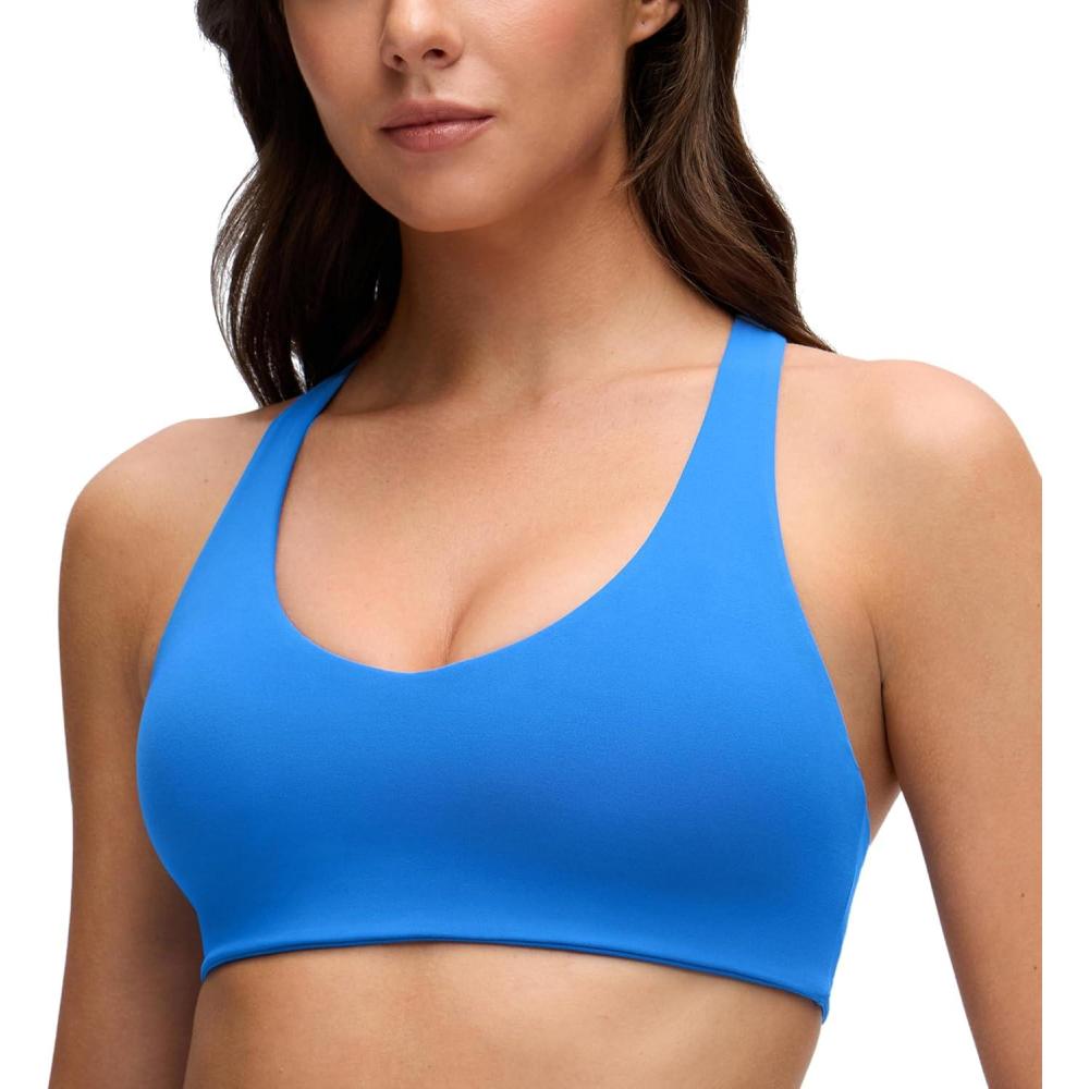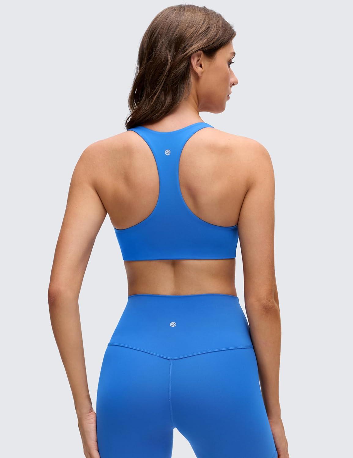 CRZ YOGA Butterluxe Racerback Sports Bras for Women – V Neck Supportive Padded Wireless Athletic Yoga Crop Top(Sparkle Blue)