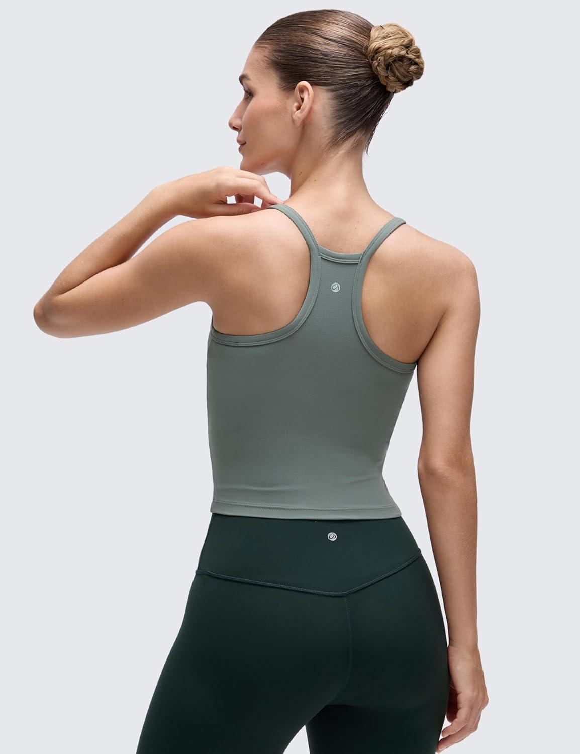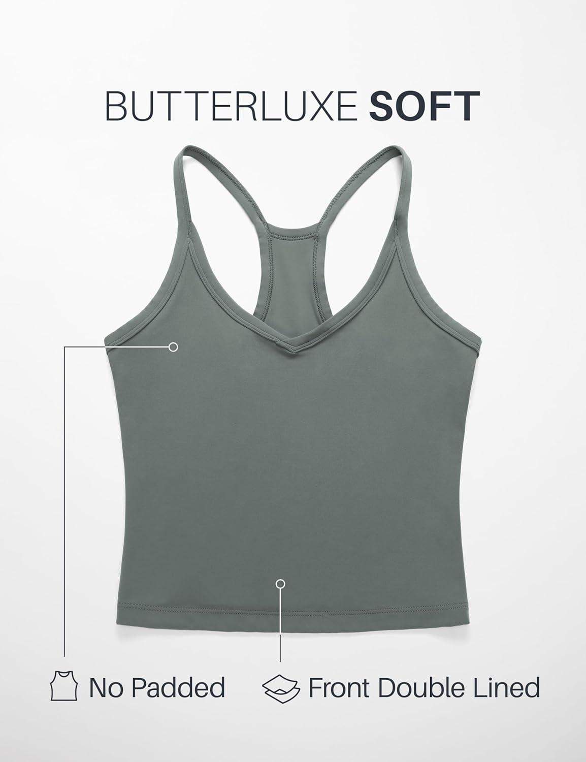 CRZ YOGA Butterluxe Soft Double Lined V Neck Tank Tops for Women – Yoga Casual Camisole Racerback Tight Sleeveless Shirt(Grey Sage)